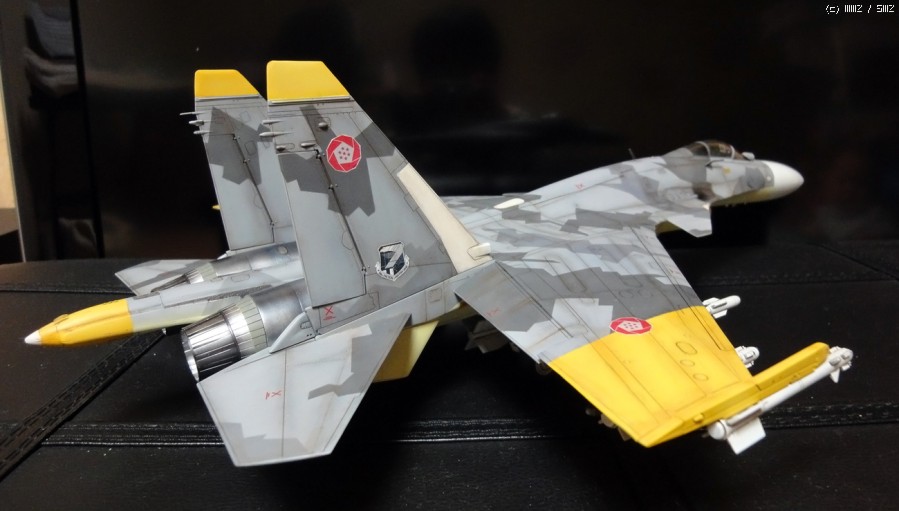 도색은 에이스컴뱃에서 가장 마음에들어하는 황색중대 컬러로 하였고 엠블렘은 데칼용지로 자작해서 붙여넣었습니다.