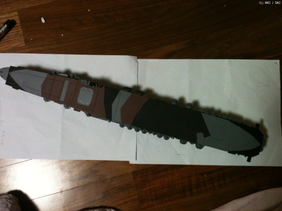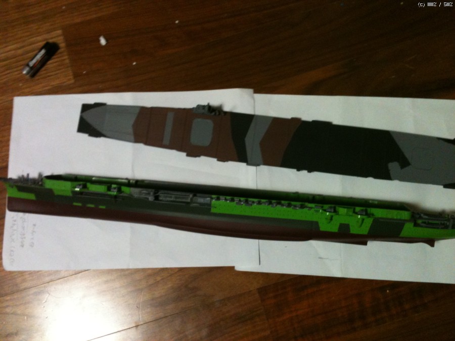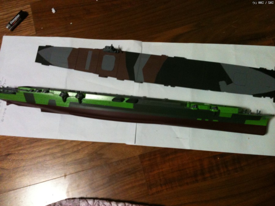 선체와 갑판은 아직 가조립상태입니다. 전부 락카계 스프레이로 마스킹해서 위장미채 도색했습니다. 1944년형인가..해외사이트에서 퍼온 상면 우측면 좌측면 세가지 자료만 보고 마스킹했습니다.