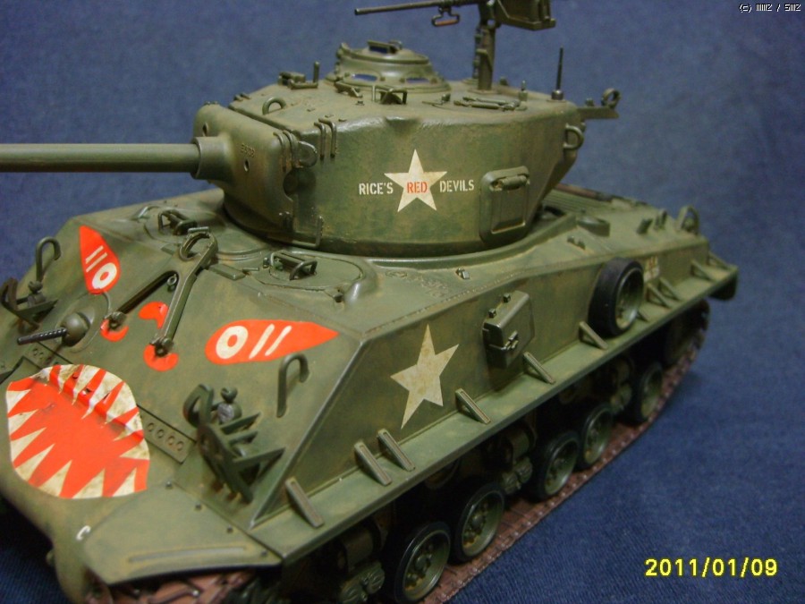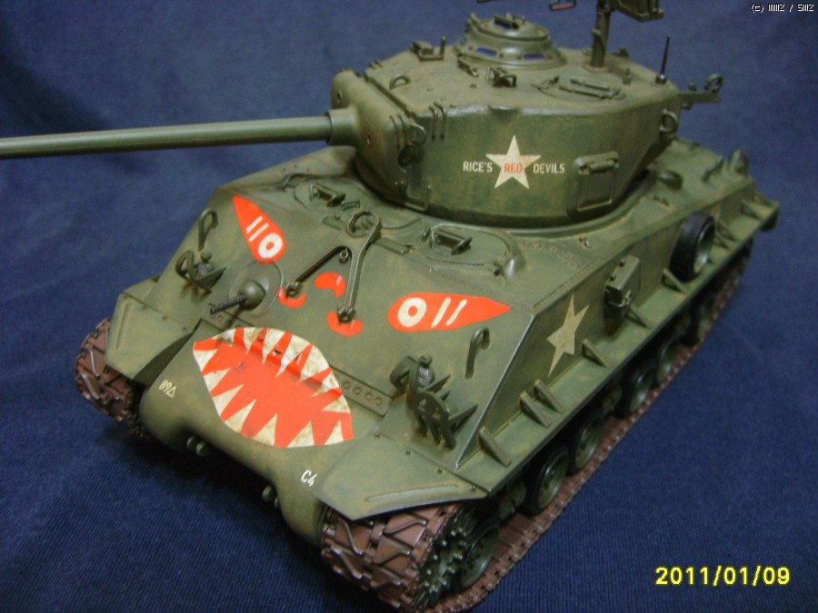 많은 분들이 아시겠지만 이 전차의 도안과 글자 Rice's Red Devils는 한국전 당시 89전차대대의 C중대장이던 클리포드 라이스 대위가 자신의 이름을 따 중대전차에 전부 같은 도안과 문구를 적어넣은 것입니다.