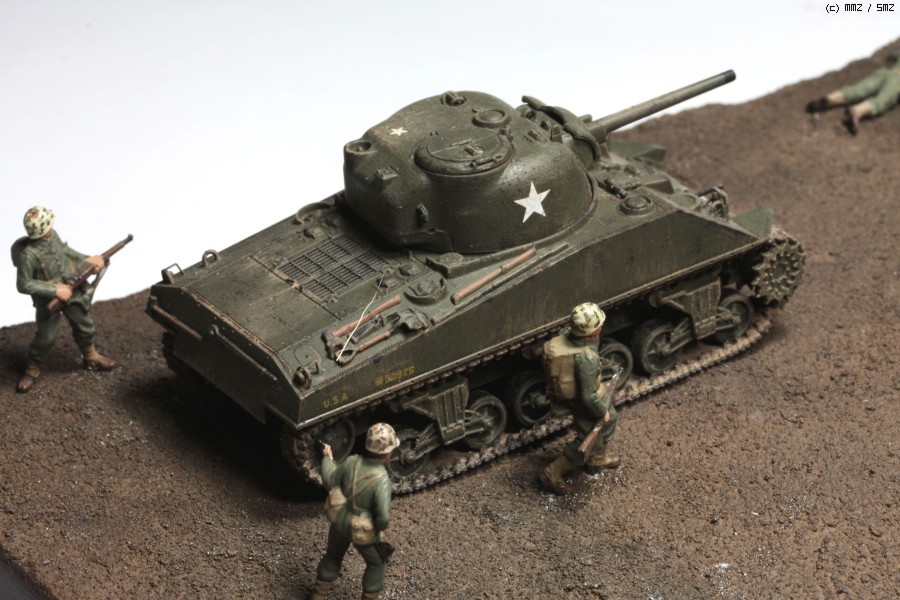 전체적인 디오라마의 풍경입니다. 셔먼과 스튜어트 사이는나중에 박철한님이 소개한 드레곤 1/72 LVT가 놓여질 자리입니다.^^