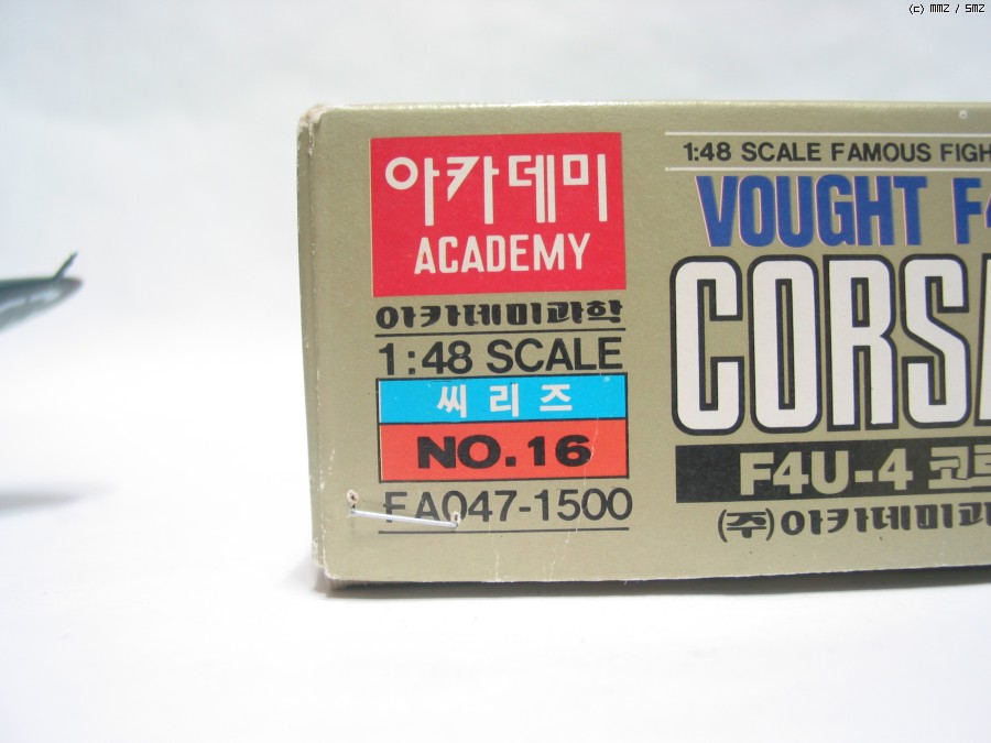 아카데미 콜세어입니다. 나름 좋은 킷 많은데 동시에 여러개 작업하는 성격이라 예전에 만들다 숙성하던 것 버리기 아까워 몰아치며 정리하고 있습니다. 아는 후배가 문방구 놀러갔다가 좋은것 구했다면서 선물해 준 것으로 품질은 다들 아시겠지만 데칼...(세상에 이런것은 처음입니다. 데칼이 오래되어 물에 30분을 넣어두어도 분리가 되지 않아 핀셋으로 뜯어내어 붓였는데 데칼이 워싱중 신나에 녹는 참사가...), 서페이서 잘 사용하지 않는데 불안한 마음에 밑칠하고 군제 락카로 도색하였습니다. 이것 만들어 7살짜리 애기나 가지고 놀라고 주려했는데 만들고 나니 생각이 바뀌려합니다. 그러나 아들과 약속한 것이 있어 양도했습니다. 15년만에 이상하게 생긴 조종사 제작하여 태웠으며 킷의 가격이 가격인지라(다음 사진에서 가격 공개합니다.) 스트레이트 빌딩 하였습니다.