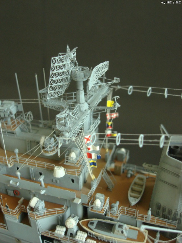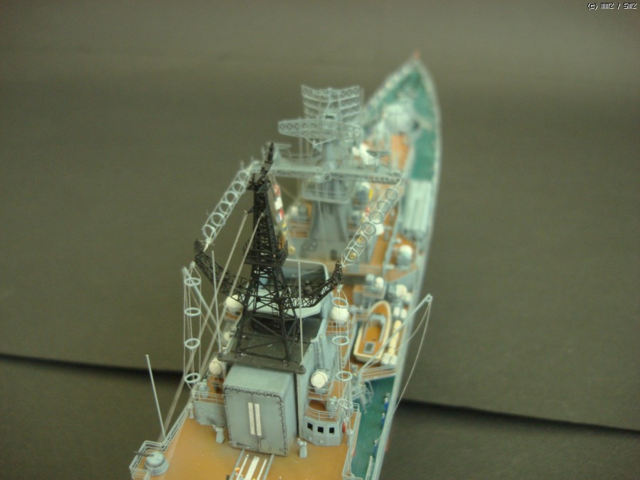 메인 레이다 콤플렉스: 또 하나의 난코스였던 전방레이다 부분입니다. 저 한부분에 몇개의 부품이 사용되었는지 기억도 안나는군요. 리깅용 아이볼트까지 포함하면 한 3-40개 될 것 같습니다. 그래도 WEM 사의 러시아 현용 함선용 에칭의 우수성을 느낄 수 있었던 레이더 작업이었습니다. 정교한 멋이 그만이더군요.