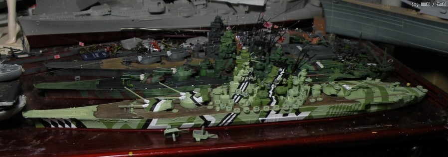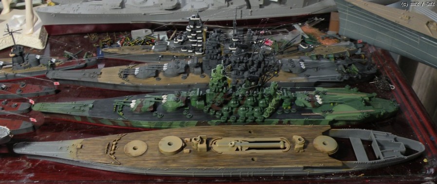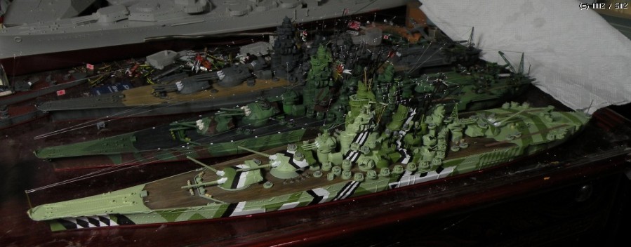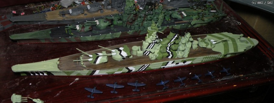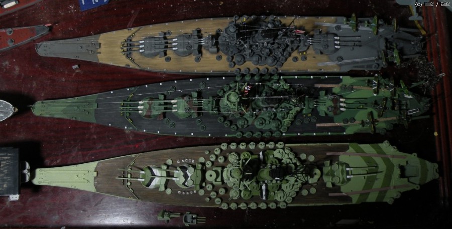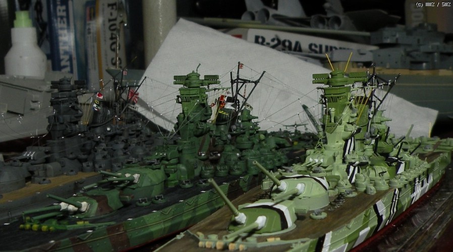 어두운 시간에 먼곳에서 보면 언뜻 야마토급이라고 파악되지 않도록 조절했습니다.