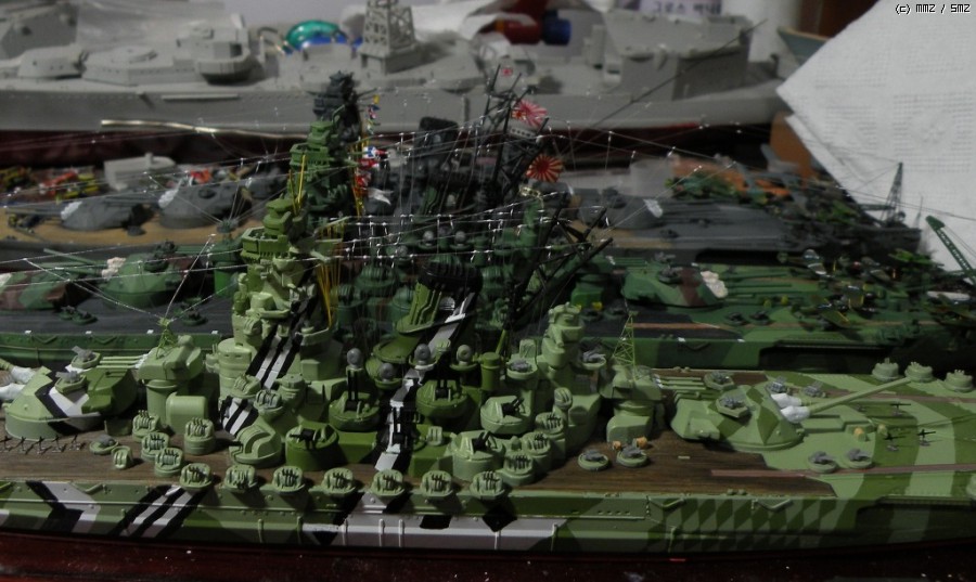 바로 전에 만든 야마토-시나노보다 대공포를 더 많이 배치하면서도 야마토 특유의 실루엣을 잃지 않도록 배려하며 증설했습니다.