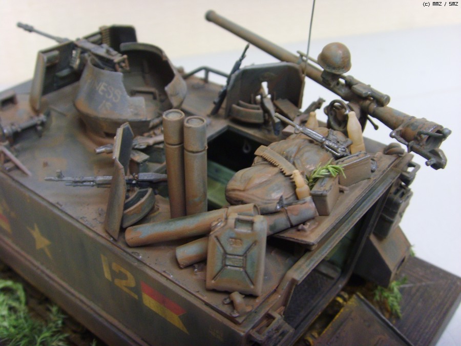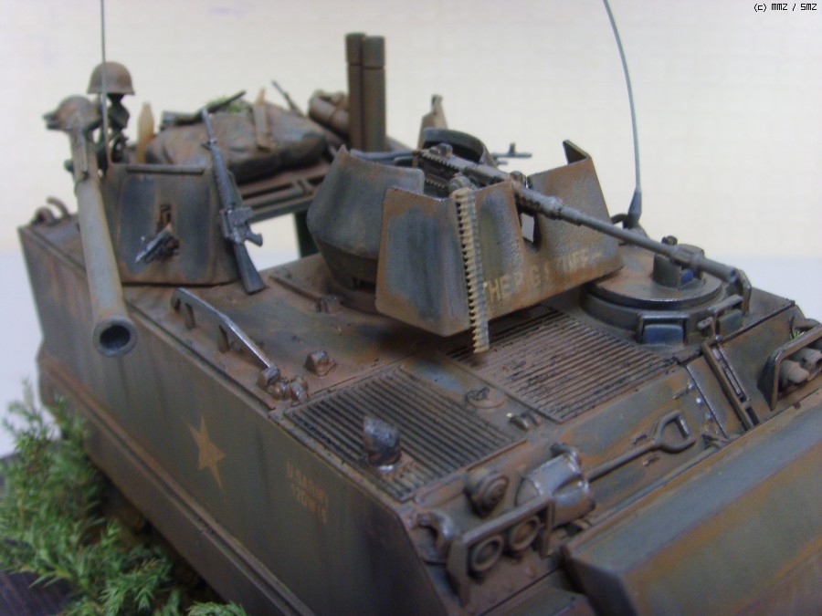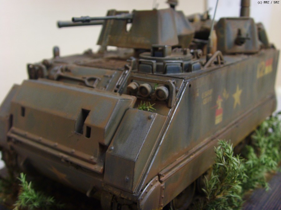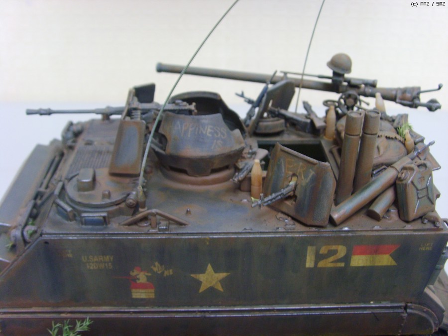 M113 베트남전 아카데미 제품 입니다. 가난한 모델러에겐 참 착하고 푸짐한 구성입니다...한 2년동안 만지작 거렸더니 아마도 도장두께가 장난이 아닐겁니다...백화로도 고생을 많이 하고 버릴려다. 간신히 살려냈습니다.... 즐거운 모형 생활 하세요....