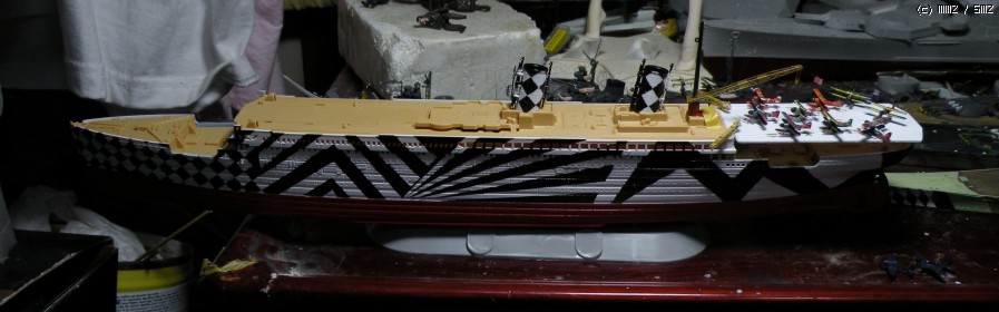 더즐미채 타이타닉의 컨셉을 대형수송선 + 수상기모함으로 잡았으므로 프라판으로 수상기덱을 자작해봅니다. 전방에는 대형비행정을 한대 얹고 후방은 수상기발함시설을 올릴 예정입니다.