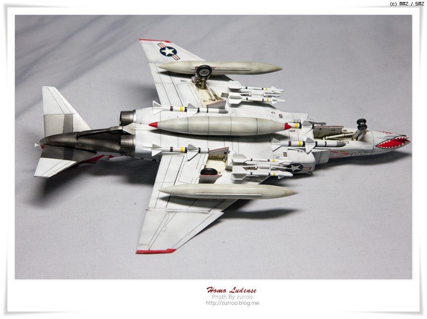 주요 수정사항은 상부 리벳 추가, 전체적인 리엔그레이빙, 수축 보완, 하세가와제 부품을 유용한 후방석 우측 격벽 추가, 에어 인테이크 좌 우측 안테나류 수정 정도를 진행하였습니다.
