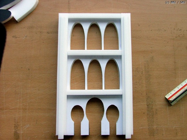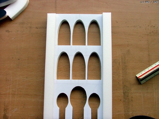 좌우 기둥 몰딩에 다시한번 얇은 우드락을 붙여주어 입체감을 살려봅니다.