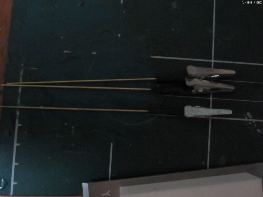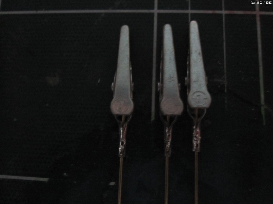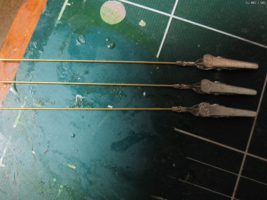 우선 집게로 악어클립을 황동선에 물려서 임시로 고정시켰습니다.