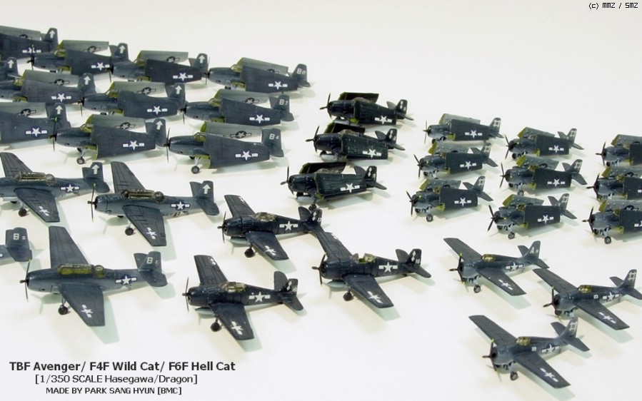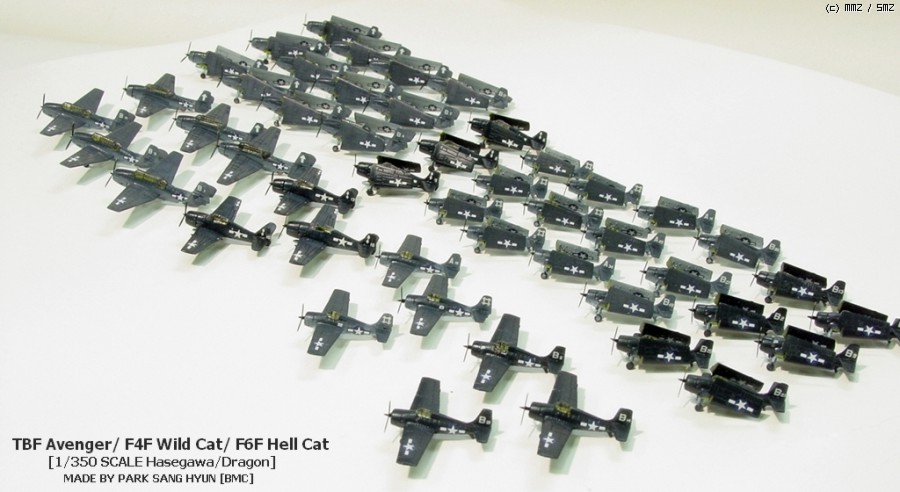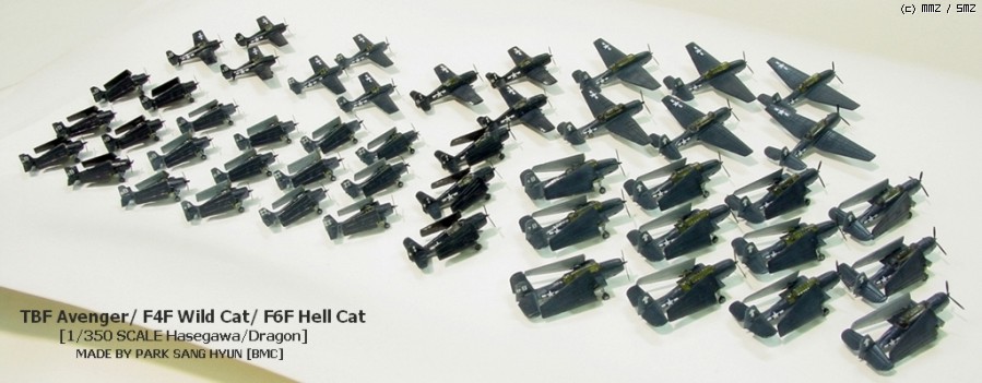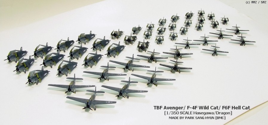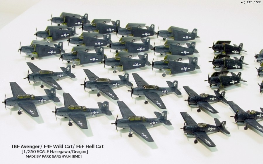 하세가와 1/350 미항모함재기 세트에서 어벤져와 와일드 켓의 작업이었습니다.