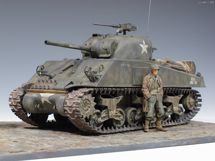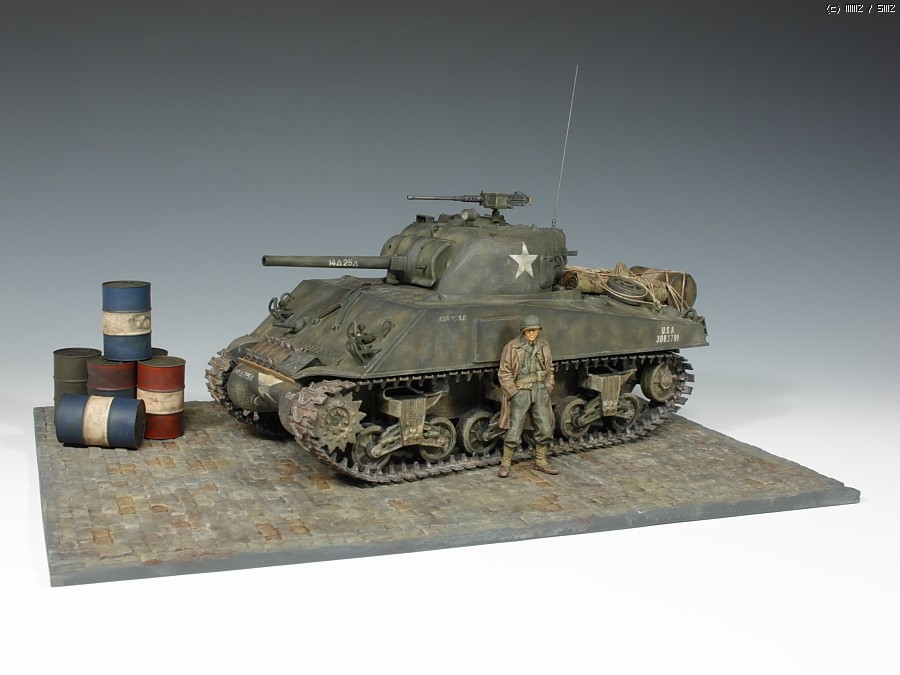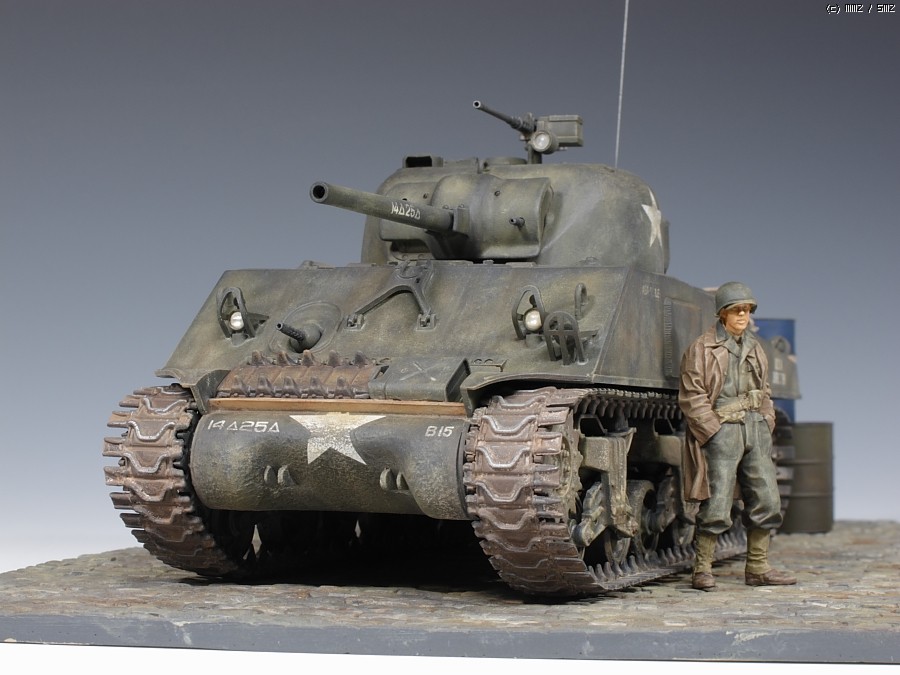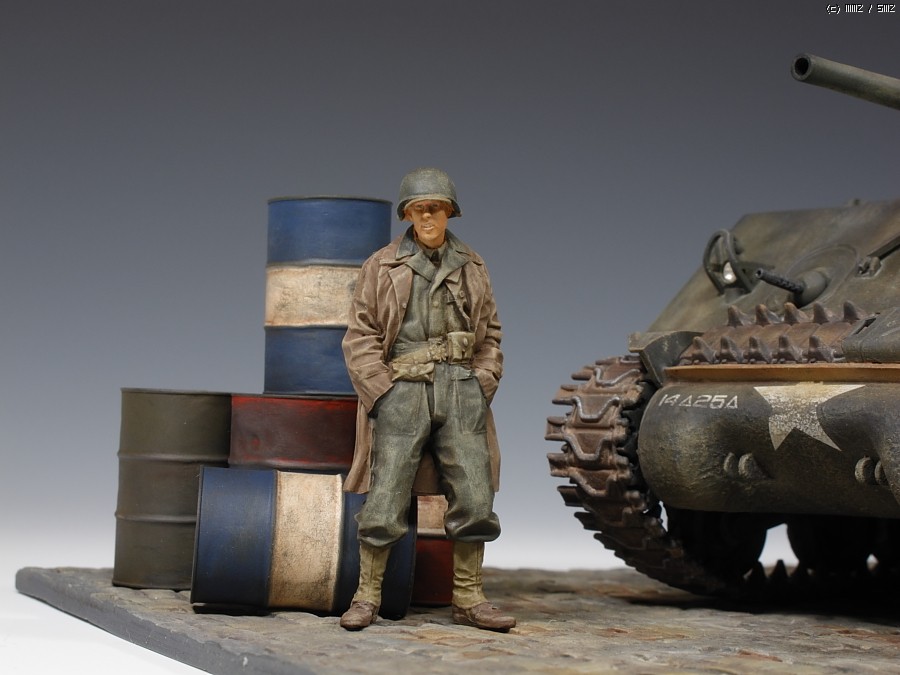 인형은 알파인제 전차병 입니다. 좀 껄렁한 포즈가 마음에 들어 구입했지만 역시 인형도색은 무리수입니다. 기본도색은 타미야 아크릴로 하고 오일로 마감 했습니다. 장비들은 모두 타미야 별매품 입니다. 라이트만 MV Lens로 달아주었습니다. 베이스는 벨린덴제 코블스톤 레진 제품입니다.