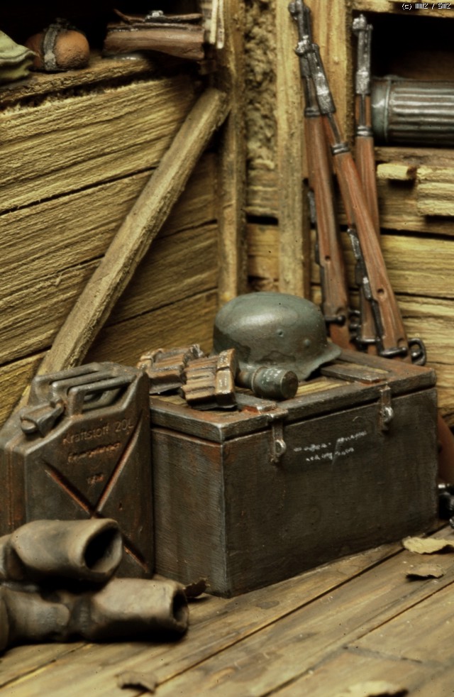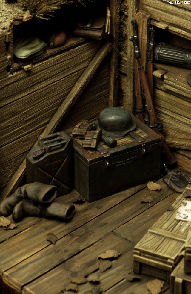 참호의 사진들을 보다가 발견한 사진중 나무박스를 사용해 참호안에 수납공간을 만든것을보고 작업해봤습니다.