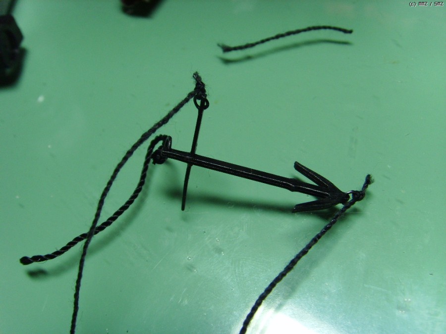 마지막으로 앵카작업입니다. 키트에 들어있는 실선은 굵기가 맞지 않는듯 해서 궁리궁리 하다 일주일만에 해답낸게 옷사고 붙어있는 가격표의 선이 딱인듯 해서 갖다 썼습니다. 질겨서 원하는대로 형태잡긴 힘들긴 했지만 무거운 앵카를 버티기엔 이 정도 굵기는 되야 한다고 생각해서요.효과는 나름 만족하고 있습니다.