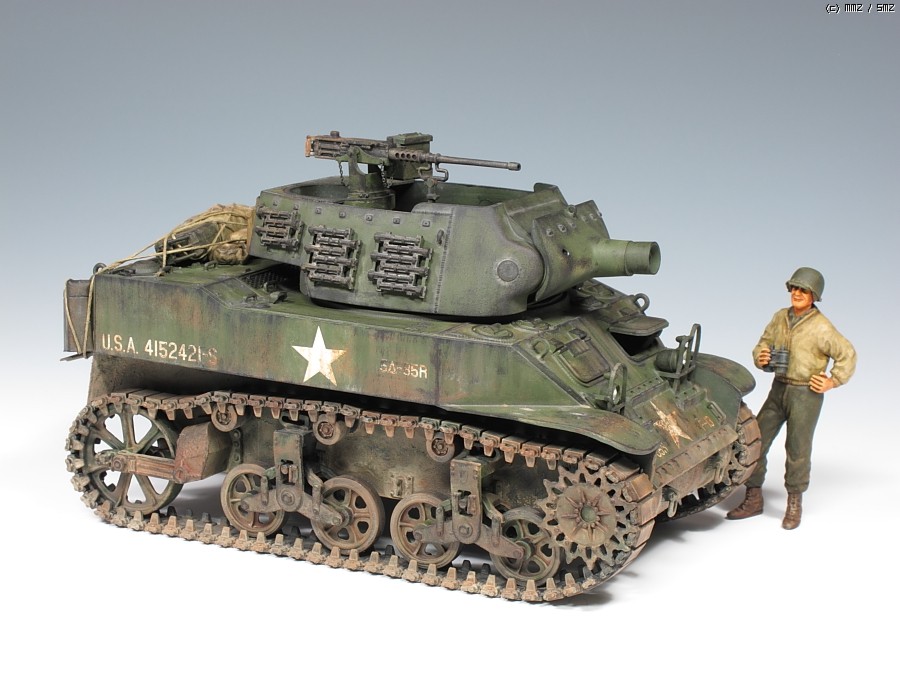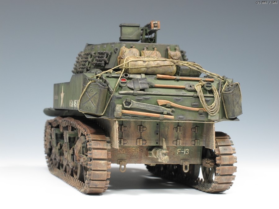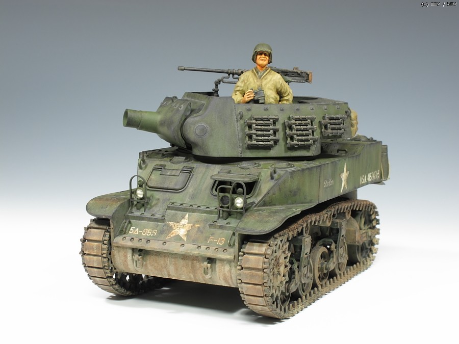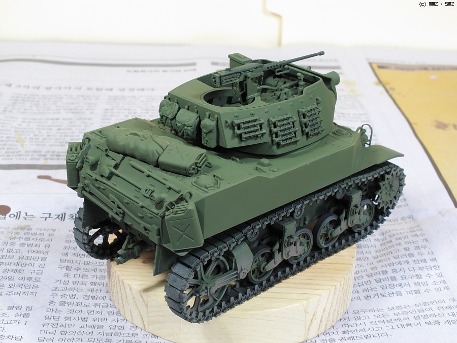 M8 Howitzer Motor Carriage (HMC)입니다. 타미야제 구닥다리 키트입니다. 뒤뚱뒤뚱 못생긴 녀석입니다. 별로 인기는 없는 아이템입니다. 펜더를 제거하고 만들었습니다. 인형은 키트제 몸뚱아리에 머리만 알파인제로 교체했습니다. 비록 모형이지만 원래있던 머리를 커터로 싹뚝 자를때는 좀 섬뜩하더군요^^