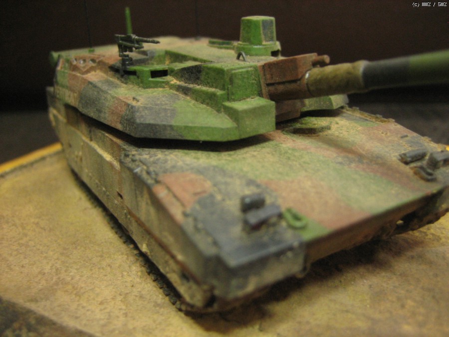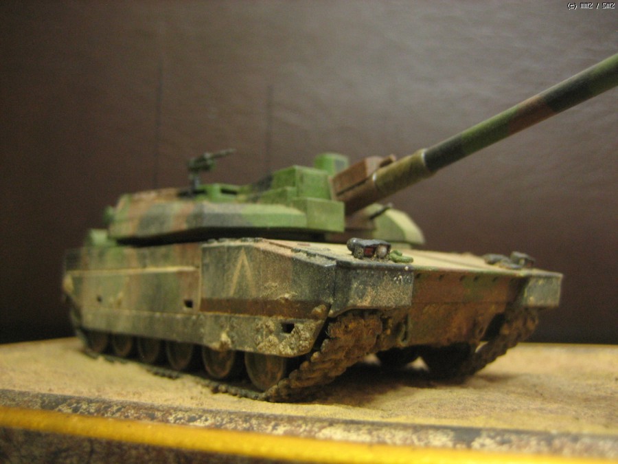 웨더링 전의 모습입니다. 에나멜 붓도색이고 어차피 르끌레르는 현용전차중 위장무늬가 명확한 편이라 스케일이 작으니 에어브러싱 보다 붓이 더 적합한것 같네요~