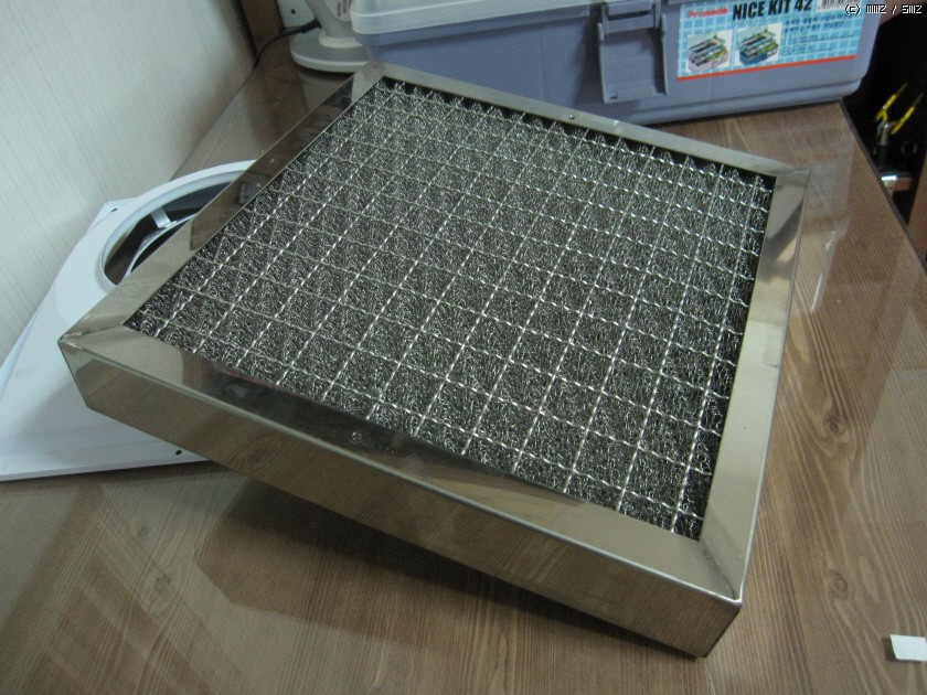 제작에 들어가 봅니다~~!! 우선 저 필터 뒷면에 결합용 구멍을 내줍니다~~(서스 제질인지 딴딴하기도 하네요 ㅠ,ㅜ)