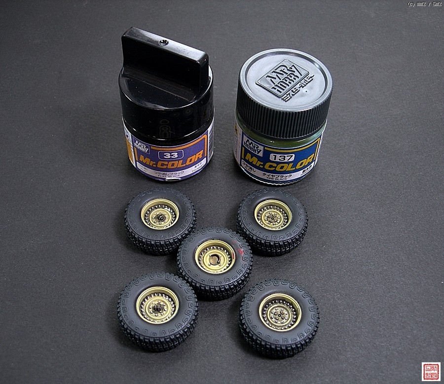 실제 타이어 색상이 검은색이라 표현하지만 도료에 지정된 검은색 만큼이나 검지는 않은데 있기 때문입니다.