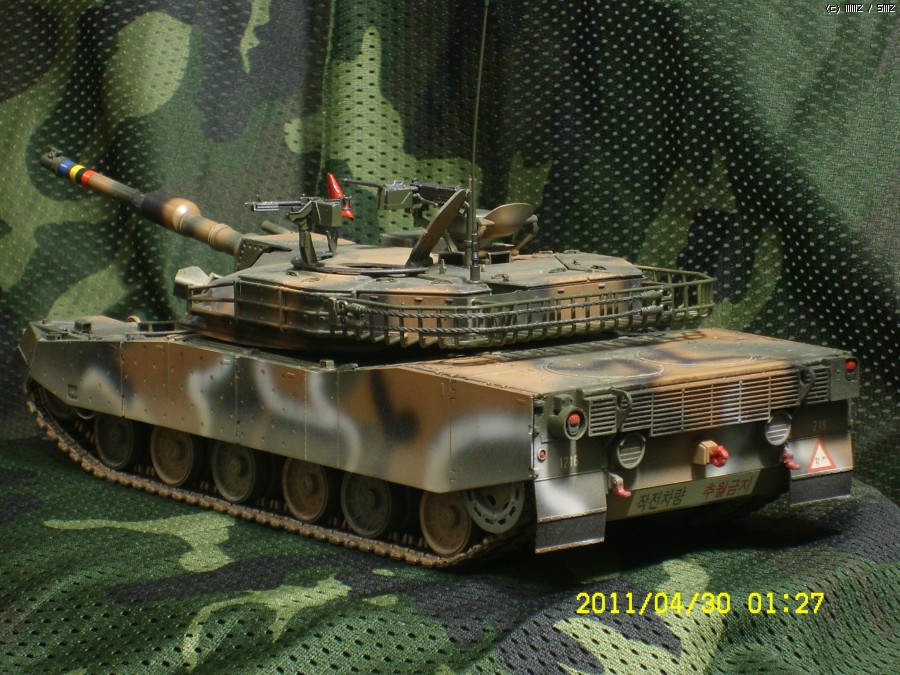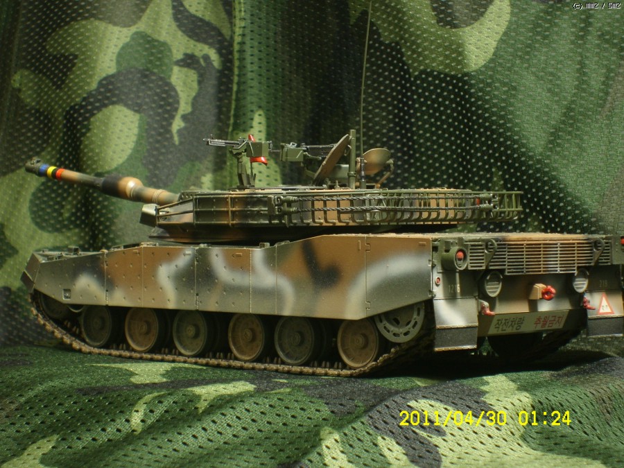 이번에는 아카데미 K1A1 입니다. 스트레이트로 작업 하였으며, 도색은 타미야 아크릴, 군제 락카를 사용 하였습니다. 인터넷의 자료 사진을 참고로 더러워진 표현 을 중점 적으로 시도 해 보았습니다. 사진 나갑니다.