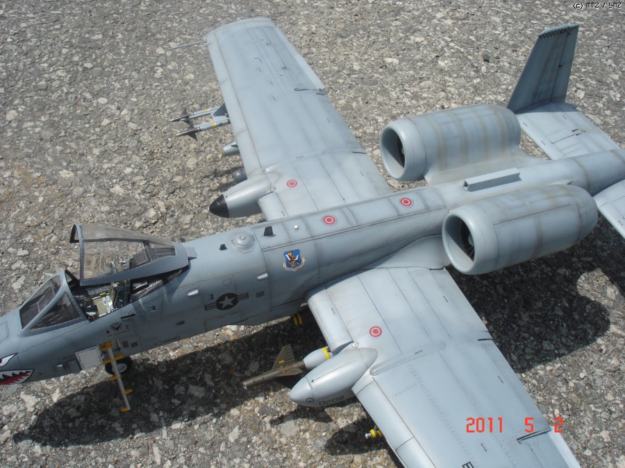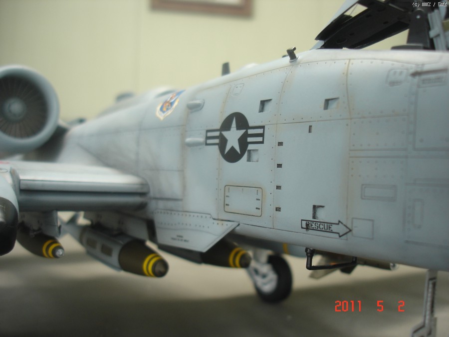 1년여만에 만든 A-10 입니다. 제작기간이 8개월정도 됩니다.잘 안맞아서 짜증내면서 만든 기억이 새록새록 나네요. 그냥 있는 그대로 만들고 웨더링하고 특히 모래흙이 묻은 표현과 좌측 엔진하부에 배기가스 그을음 표현해 주었습니다.그리고, 무장은 킷트것 마음에 안들어서 아카데미 호넷에서 차용 하였고,메버릭은 두가지 색으로 도색 하였습니다.폭탄이 언발란스인데 귀엽게 봐 주세요. 감사합니다.