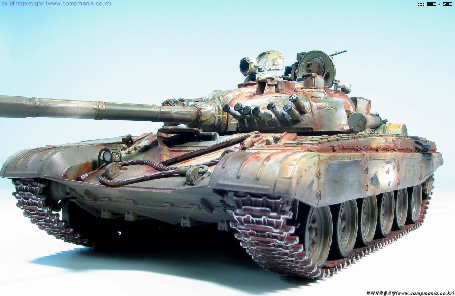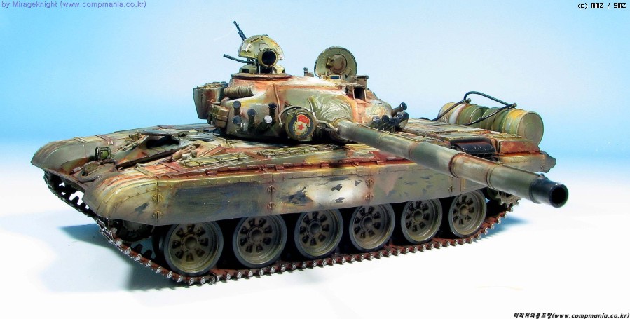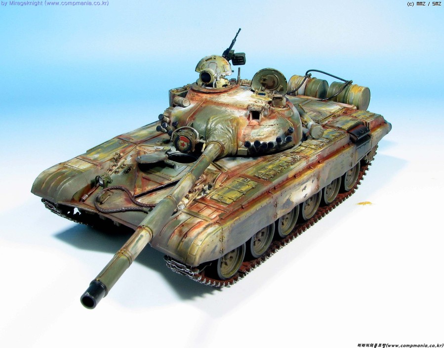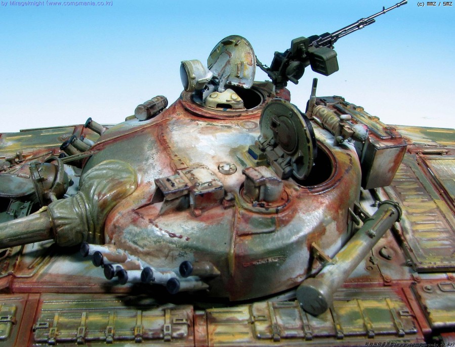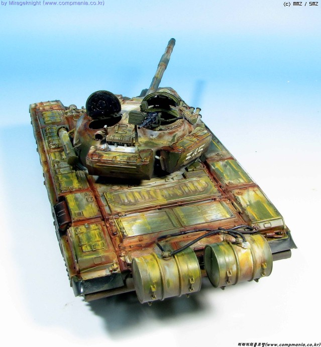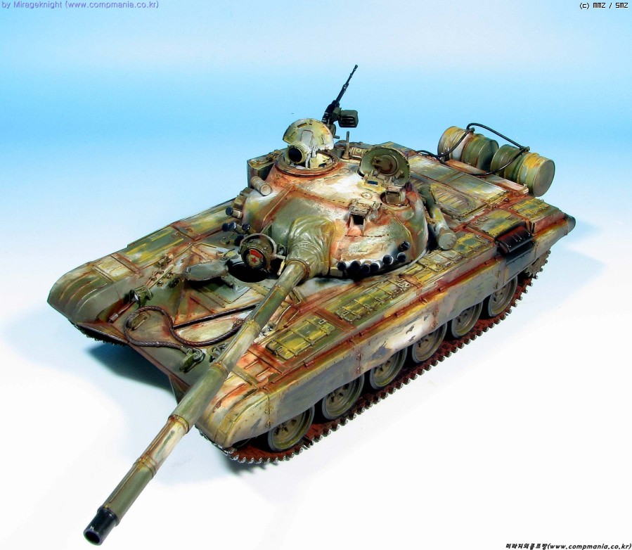 킷 자체는 스트레이트로 제작했으며 예전 모델러 2000 인가에서 본 작례를 떠올리며 도색해봤습니다. T-72M1은 족색 단색 아니면 사막색이라 도장하기가 쉽지 않더군요..