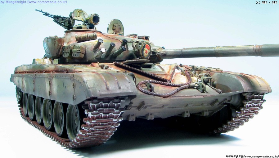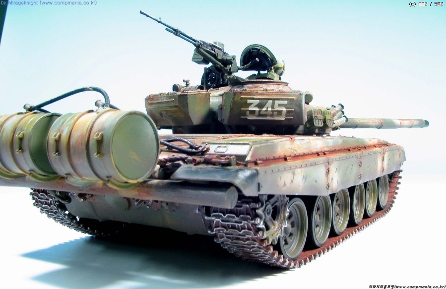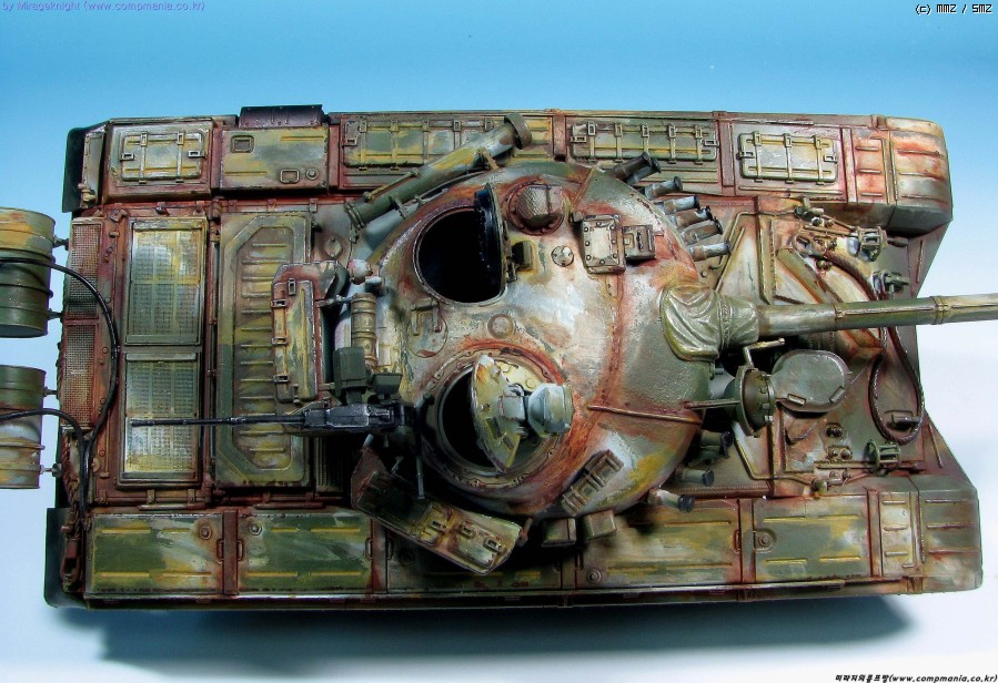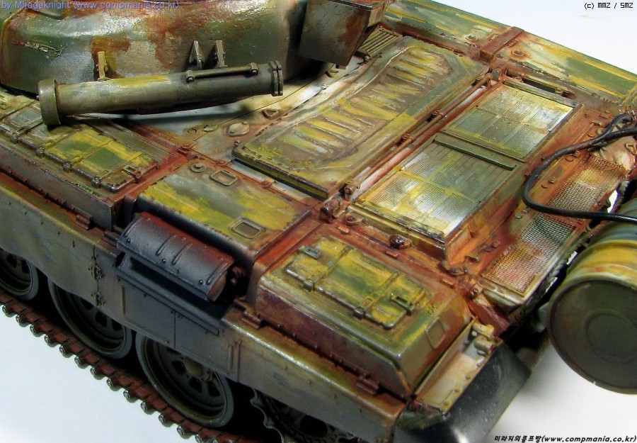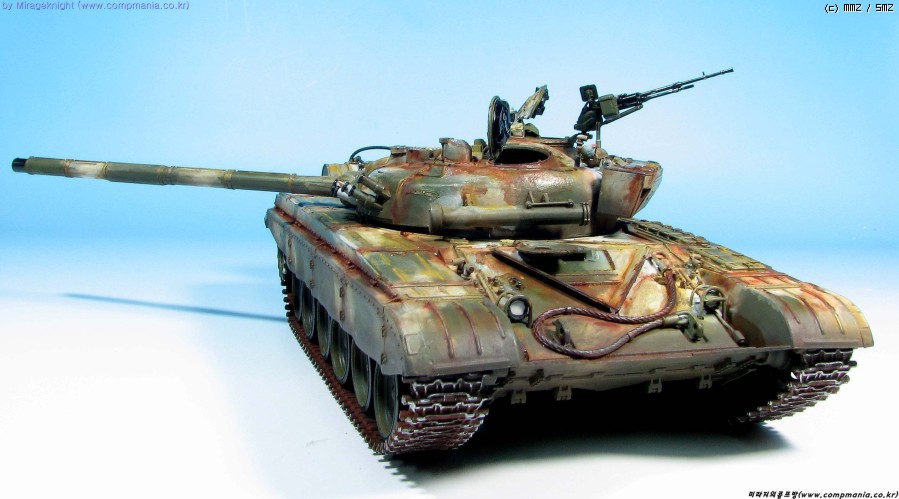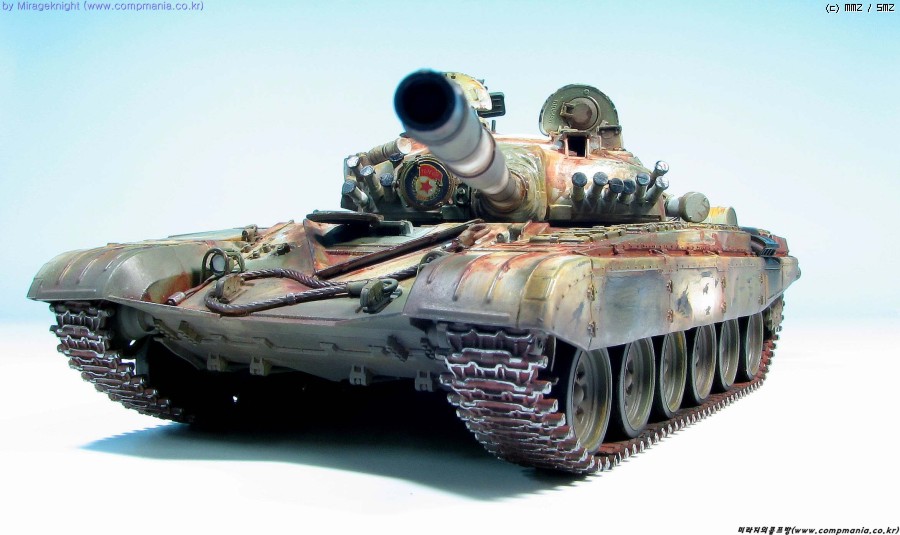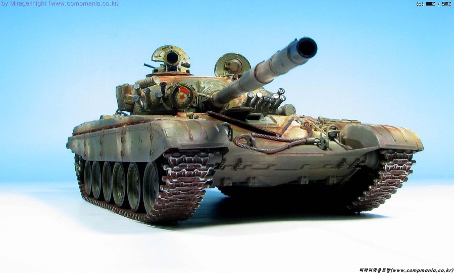 킷 자체는 스트레이트로 제작했으며 예전 모델러 2000 인가에서 본 작례를 떠올리며 도색해봤습니다. T-72M1은 족색 단색 아니면 사막색이라 도장하기가 쉽지 않더군요..