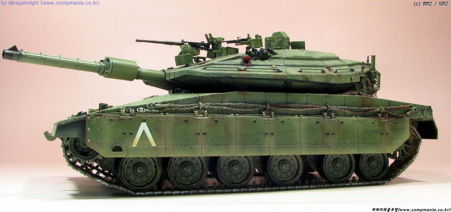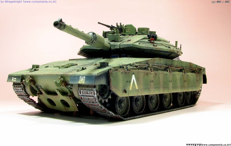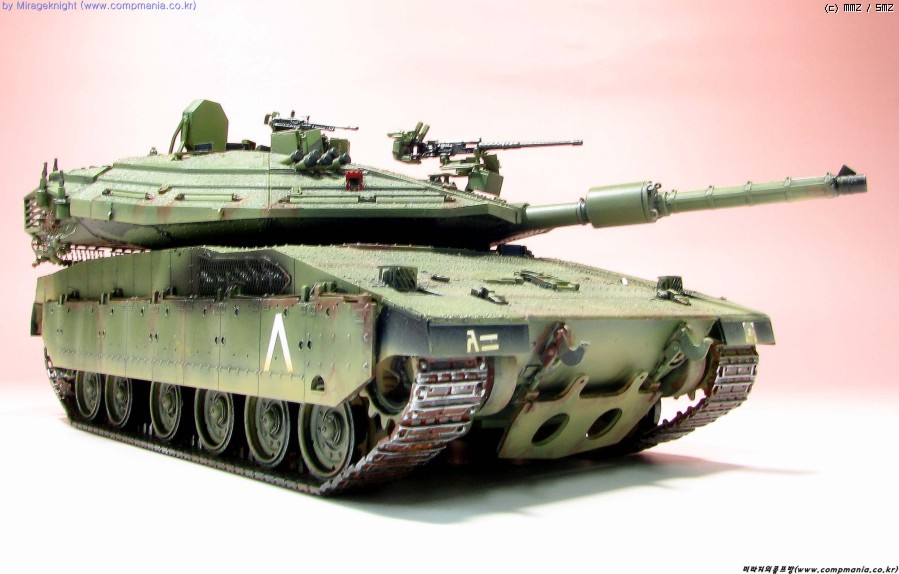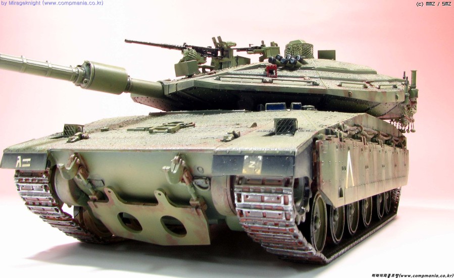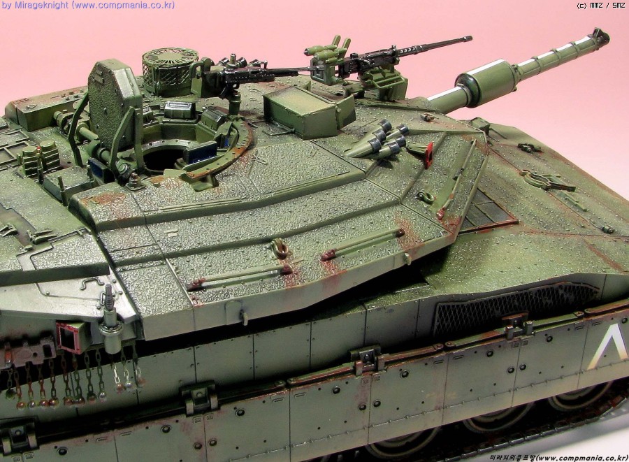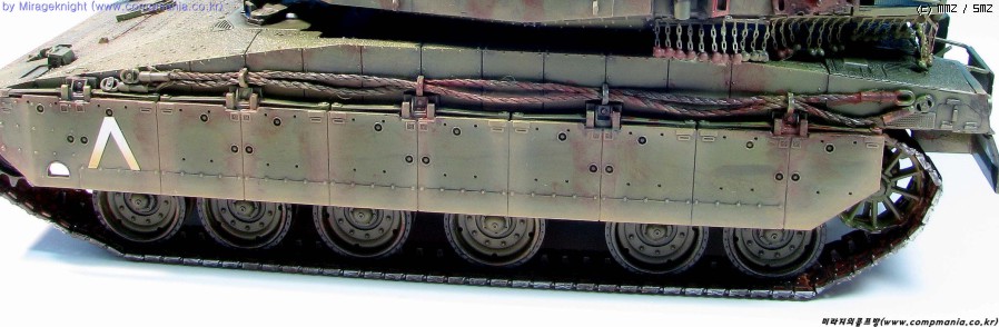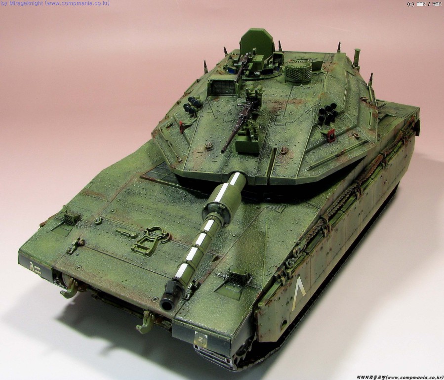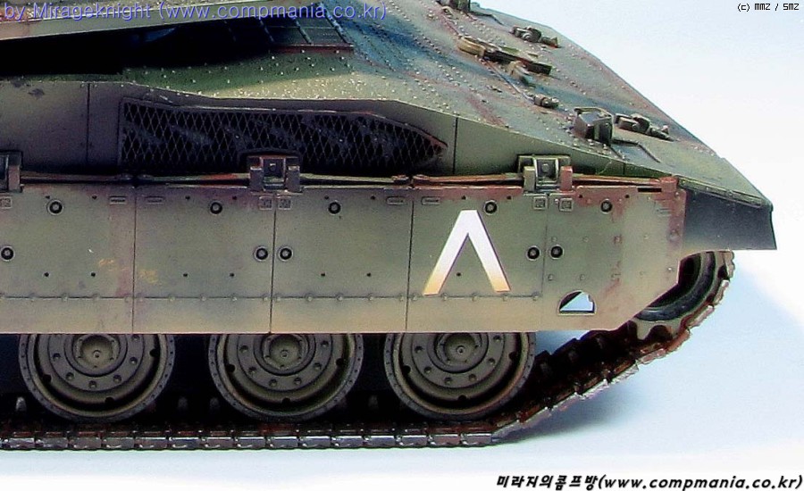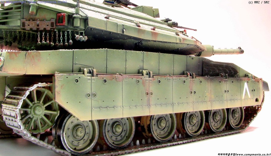 메르카바4는 현용전차로 실제에는 이렇게 녹이슬지 않겠지만 약간의 모형적과장으로 좀 과하게 녹표현을 해줘봤습니다.