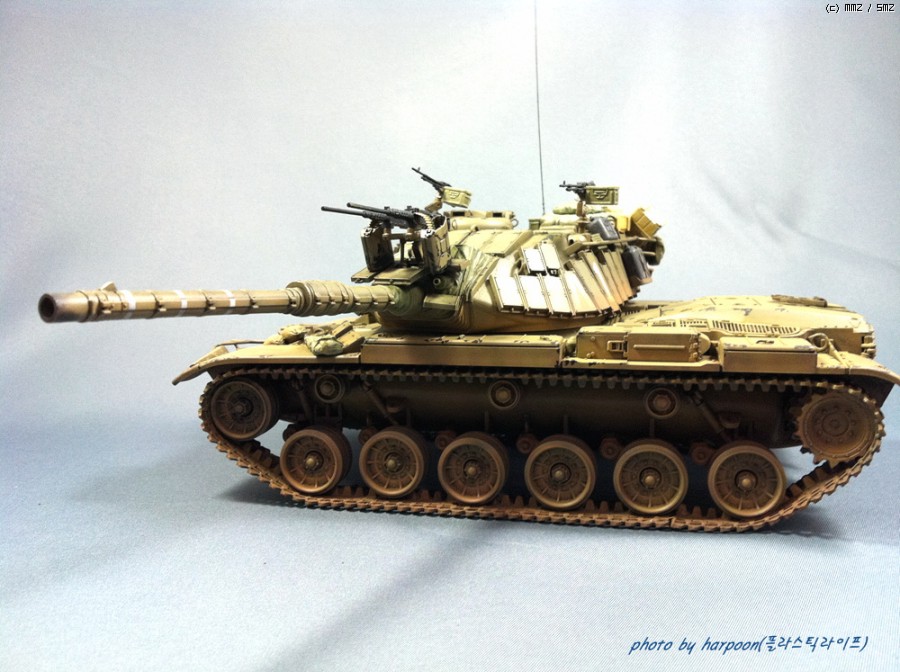 아카데미 IDF M60A1입니다. 장기숙성인 녀석인데 최근에 필 받아서 오늘 완성했습니다. 좀 녹색끼가 많이 들게 조색해서 도색을 했습니다. 웨더링은 치핑과 먼지표현을 해 보았습니다. 장비품은 여기저기서 모아서 올려 보았습니다. 제가 소속된 동호회가 최근에 정기모임에서 2011년7월24일에 열리는 하비페어에 참가 하기로 잠정 결정한 상태입니다. 잘 준비해서 참여토록 노력을 하겠습니다. 요즘 외도가 좀 잣습니다. 도색할 준비가 완료된 비행기가 두대나 있는데 도통 손이 가질 않네요 ^^ 어쩌면 당분간 AFV를 자주 만들것 같습니다. 즐모 하세요. 감사합니다.
