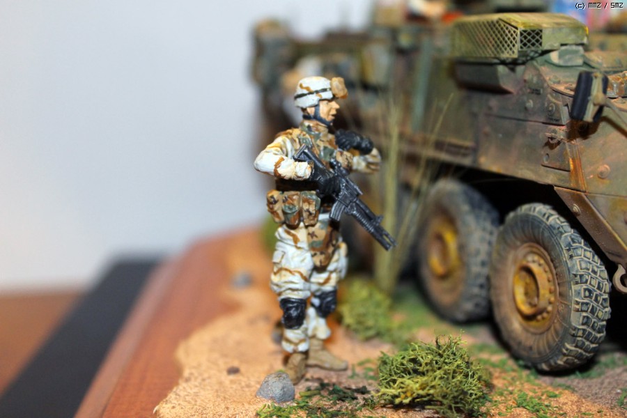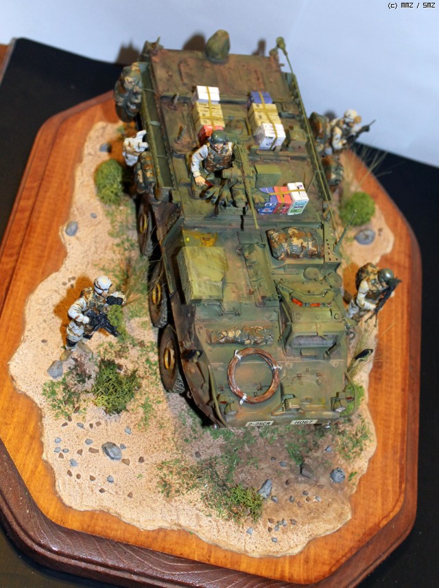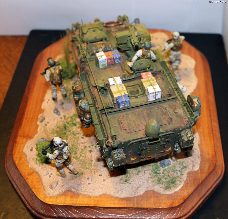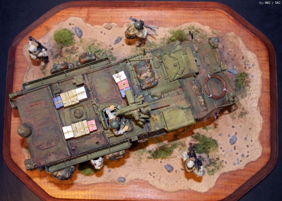 누군가에게 선물로 작품을 만드는 것은 즐거우면서도 부담이 되는 일인 것 같습니다. 좀더 세부적인 것에 신경을 쓰고 싶었지만 선물을 전해주는 날 (기념일)이 정해져 있어서 서둘러 마칠 수밖에 없었습니다. 아쉬움이 많이 남는 작품이 되고 말았습니다. 라커 기본 도색후 에나멜로 웨더링 효과를 냈습니다. 유화물감도 조금 썼는데 별로 티가 나지 않습니다. 마지막으로 미그 피그먼트로 먼지효과를 냈습니다.