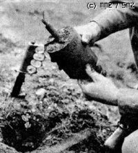 S mine의 작동사진입니다. 일정높이까지 발사되면 자동으로 터져서 일정범위의 사람을 살상하는 역할을 한다고 합니다. 그리폰 에칭 설명서를 보면 티이거 전차에 설치될 수 있는 것 같습니다.