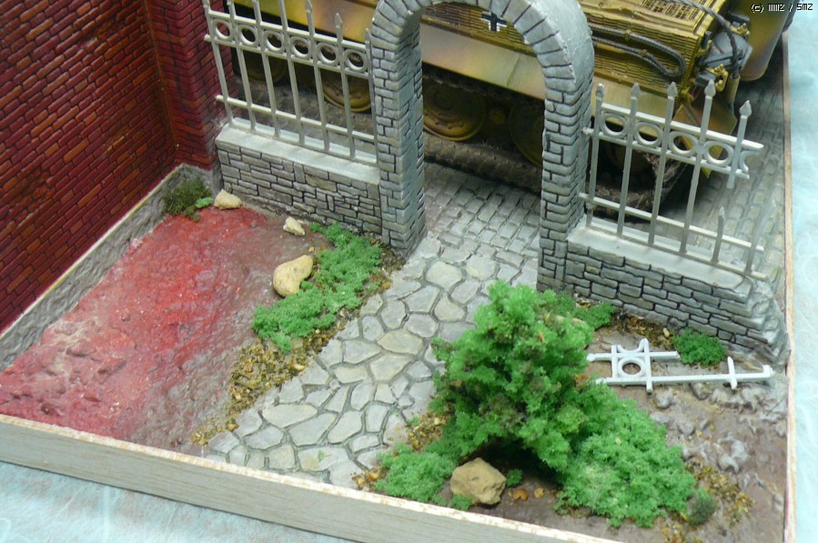 배경은 미니아트의 건물입니다. 건물과 그 주변이 벽돌과 돌로 구성되어 있어서 하나하나 붓으로 칠하였습니다.