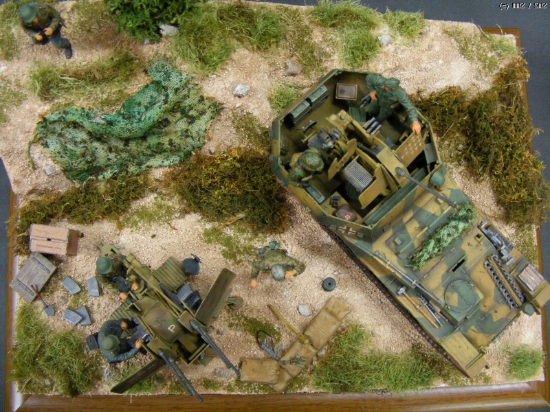 제공권이 넘어간 대전말 대공포들입니다. 게파드는 알란사 제품이고 2CM 4연발 대공포는 드래곤입니다. 즐겁게 봐주시고 또 많은 지적 부탁드립니다. 인형은 이곳 공구에서 주문한 확대경과 세필 받으면 더 좋은 모습이 나와주길 기대합니다. 인형 색칠에 홍경호님께서 많은 조언 주셨습니다. 또한 철한님께도 늘 감사드립니다.장마에 모두 건강하세요