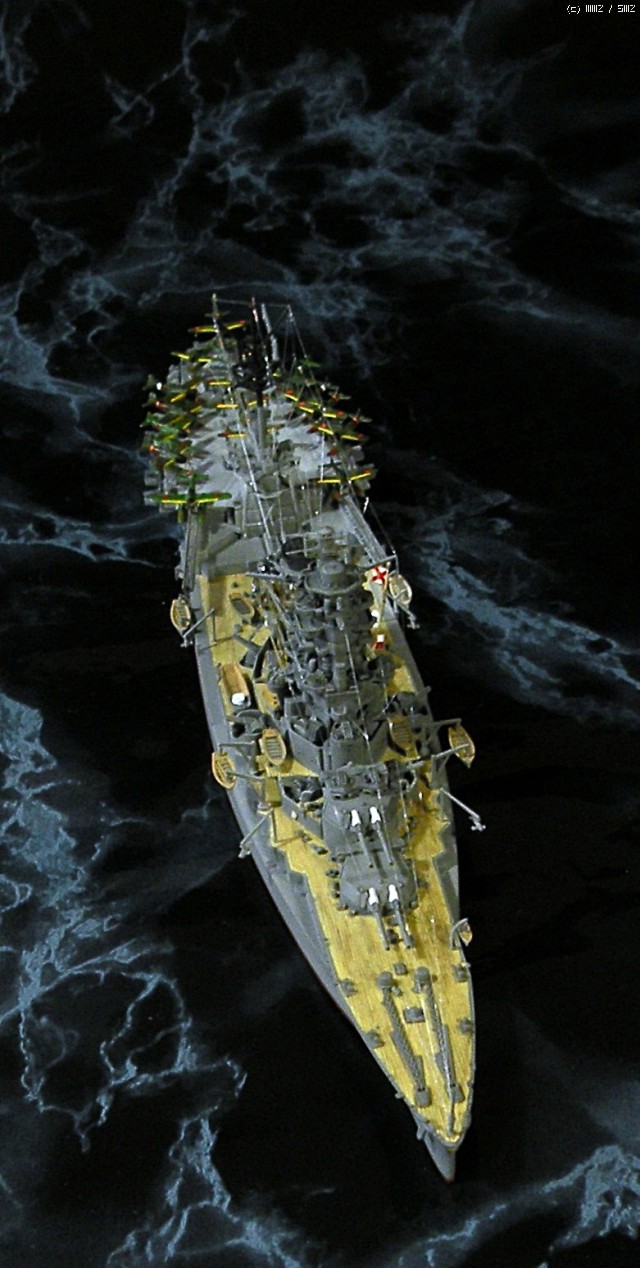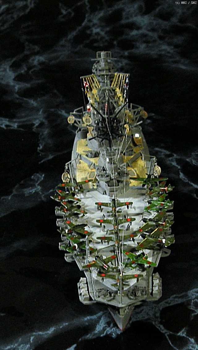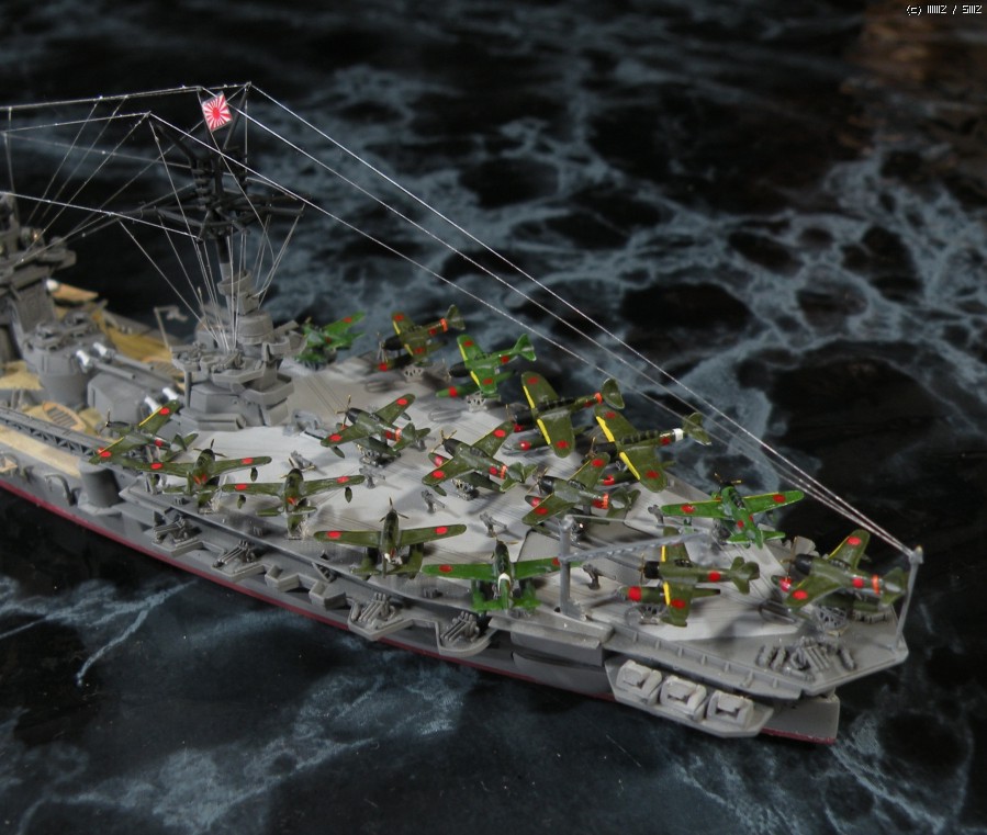 함재기는 워터라인3사 후기형 구축함에 들어있는 공용런너에서 세이란, 쿄푸 같은 강력한 엔진을 달고 있는 비행기로 골라서 달아줬습니다. 쿄푸가 직엄,호위를 하고 세이란이 폭탄을 떨구면 그럴듯한 기동함대겠죠.