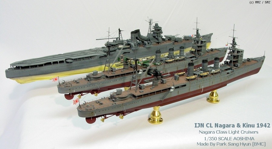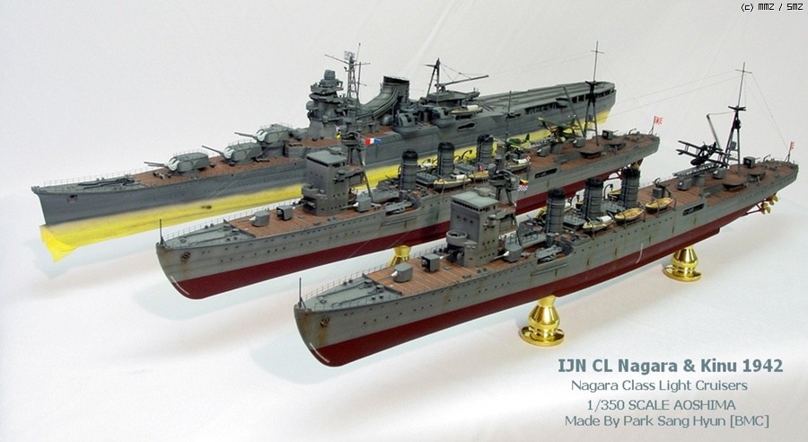 이번 함선은 2차 세계대전 당시의 일본해군 경순양함 나가라와 키누입니다.
