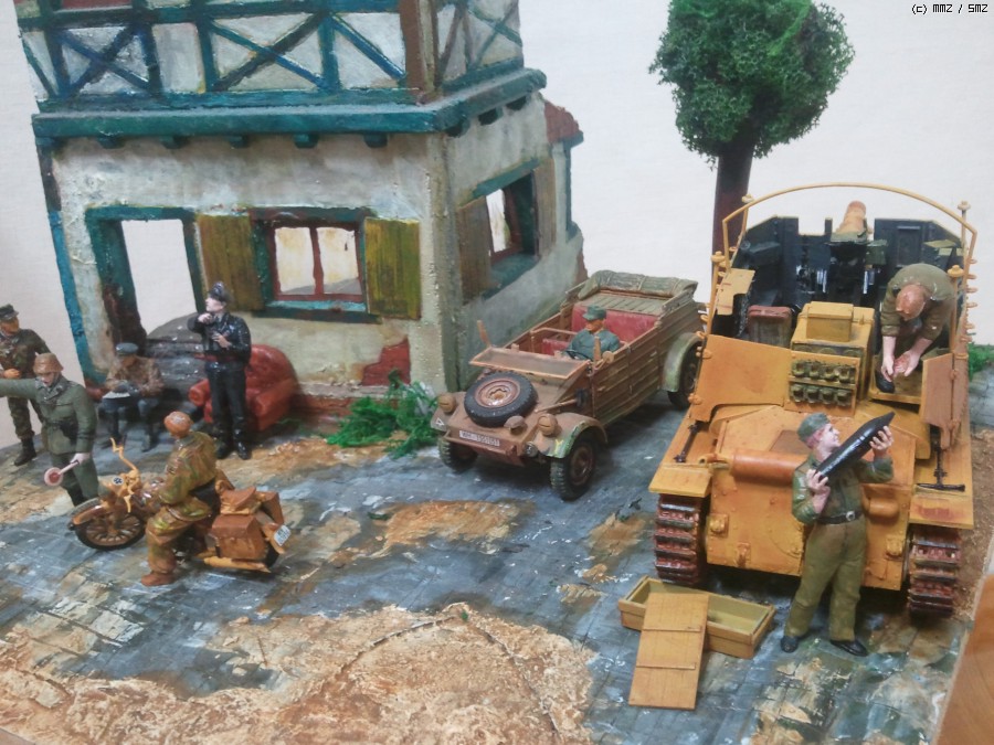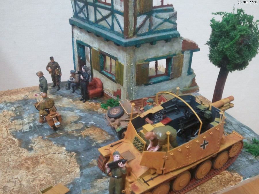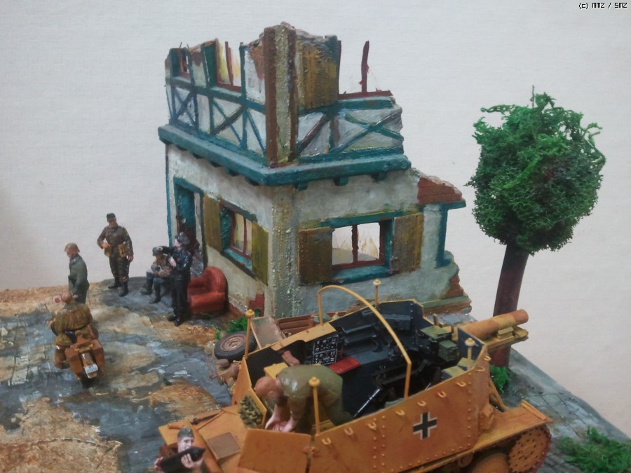 폐허된 건물 근처에서 전투준비 중인 독일군입니다.