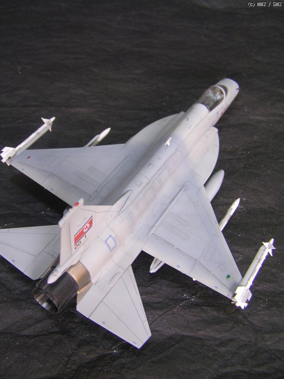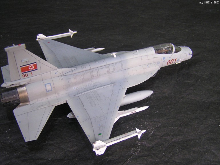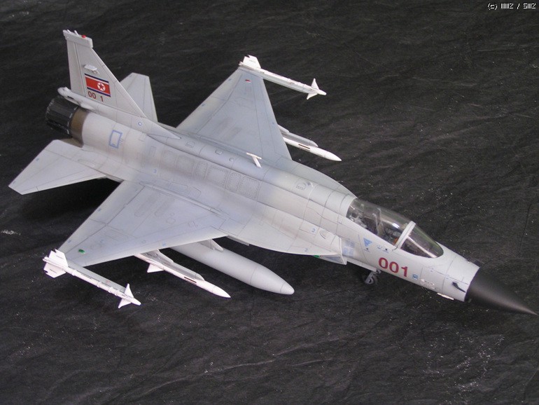 원래 북한 관련 장비로는 사진으로 확인된 것만 만들려고 했는데 북한이 보유한 신형 전투기가 워낙 적다 보니 조금이라도 레파토리를 늘려보겠다는 욕심에 일부 언론사의 보도만을 근거로 제작을 강행 했습니다. 그런 이유로 도색에 근거가 전혀 없습니다(파키스탄 공군의 도색을 그대로 사용 하면서 국적마크만 ...)