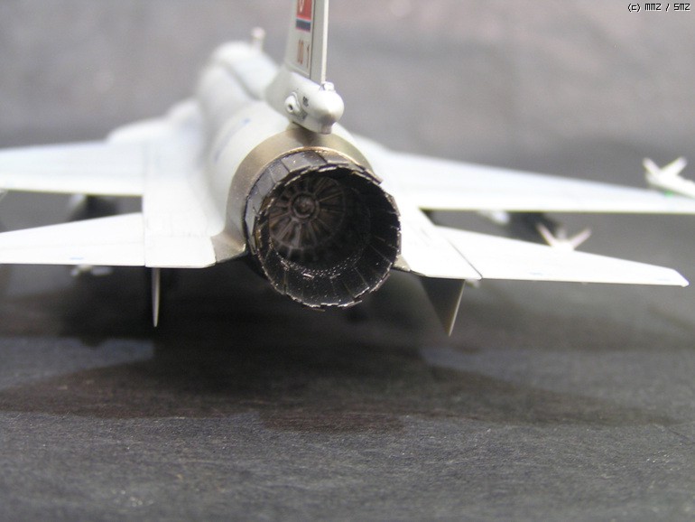 트럼페터키트는 자국의 기체라서 그런지 매우 준수한 품질을 보여주고 있습니다. 다만 엔진노즐의 경우 풀에칭을 선택 사항으로 넣어주고 있는데 노즐 외경의 경우 에칭으로 만든경우보다 플라스틱 부품이 실기에 더 가까운 형태를 하고 있습니다. 바깥은 플라스틱 부품을을 사용하고 노즐안쪽에만(플라스틱노즐에는 내부 몰드가 없음) 에칭을 이식한는 공사를 하시는 편이 좋습니다.