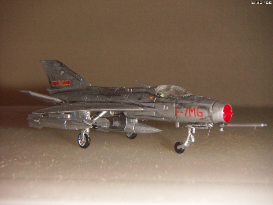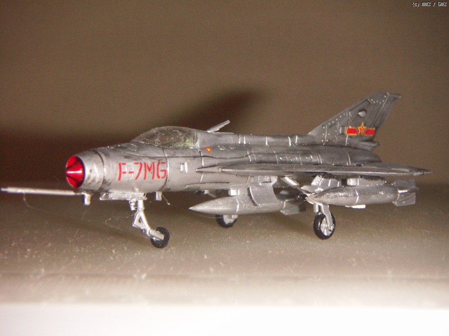 지난번에 올린 PLAAF F-7II와 다른점은 기관총 대신 미사일을 장착한 버전입니다. 키트는 다릅니다. 옛날 중국제 키트는 몇가지를 바꾸어서 여러개의 다른 키트로 만들어 냈읍니다. 중국 전투기 시리즈로 산것이 있어서 계속 올리려 하고 있읍니다.