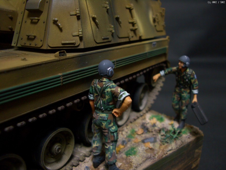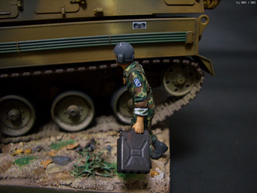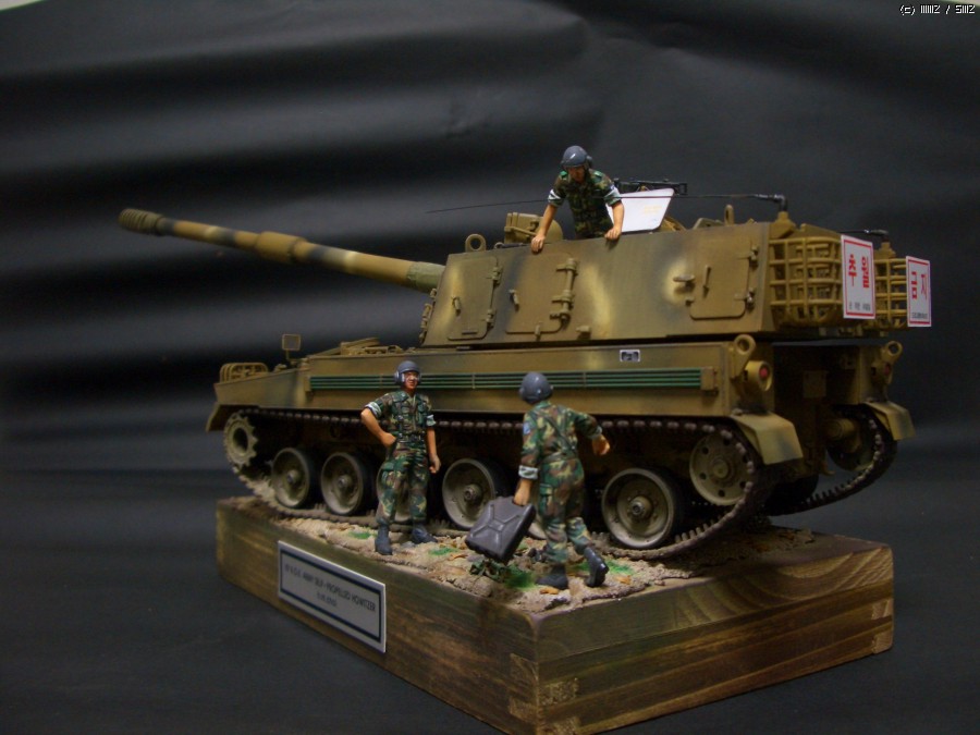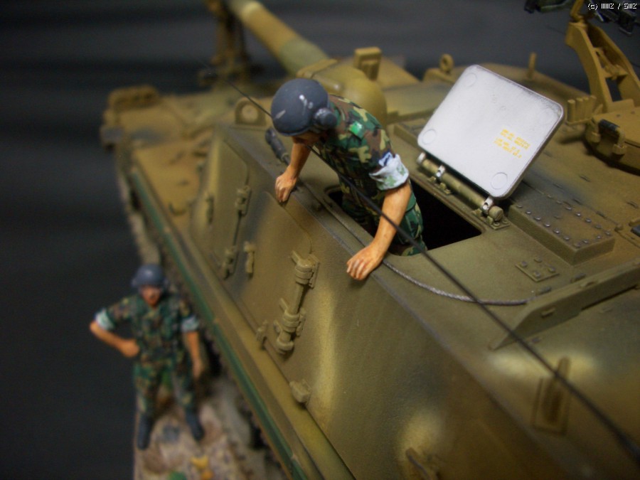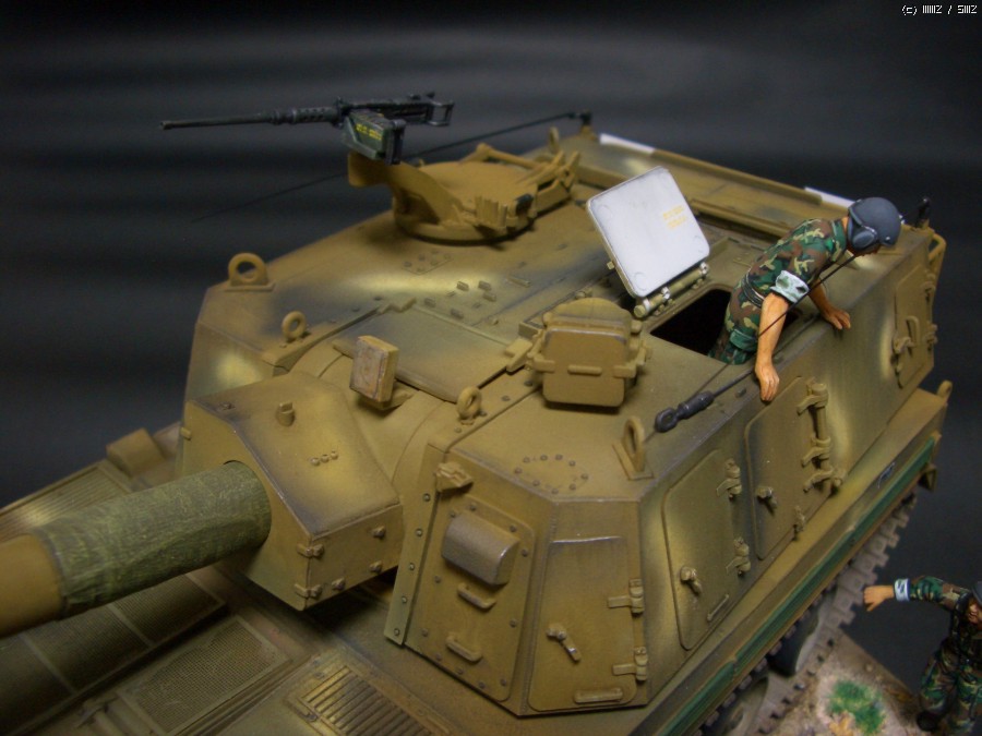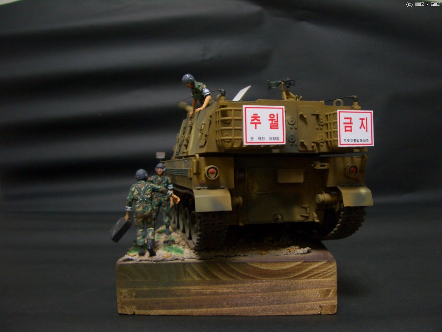 연평도 도발때 조립 방치하다가 며칠 바짝 작업해 봤습니다.약간의 디테일업도 시도해 봤습니다가녀린 포신에 마스킹테입으로 감싸주고 라이트 붙여주고 아테나 구부려 주었습니다.^^ 자주포 보다 군발이 위장무뉘 칠하는게 더오래 걸린것 같네요