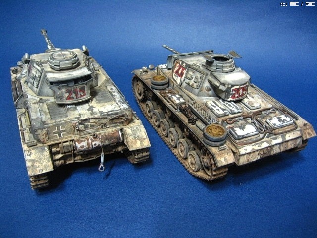 2일동안 쉴틈없이 작업한 3호와4호 입니다, 의뢰작이며 조립은 의뢰인깨서 직접하셨고 도색은 동계위장으로 부탁을 받아 작업했습니다, 동계위장은 첨이라 어떤식으로 표현을 해야할지 고민이었고웨더링은 약간 하드한것을 요구해서 거칠게 표현했읍니다 급하게 뛰다보니 도색이 디테일한면이 없습니다, 이번 동계위장 작업을 경험으로 삼아 다음 작업때에는 섬세하게 해볼생각입니다, 도색은 험브럴이고 유화 워싱/필터링, 피그먼트는 미그제품입니다,,,