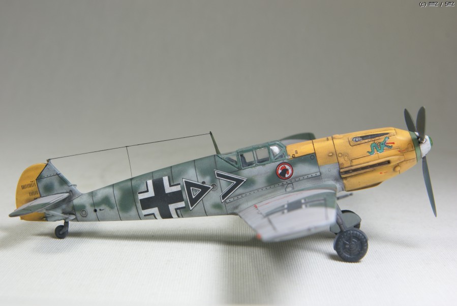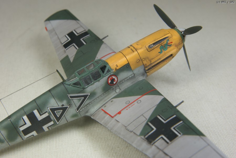 동체 국적마크는 제가 실수를 한 건지..데칼 사이즈가 문제가 있는 건지 일러스트보다 데칼이 큽니다. 수직미익에 원래는 나치 마크가 들어가야 하는데 제품에는 검은색 사각형만 들어있습니다. 아마 유럽쪽 수출 때문에 그러한 듯 한데...국내용은 좀 융통성을 발휘해줬으면 하는 작은 소망이 있습니다.