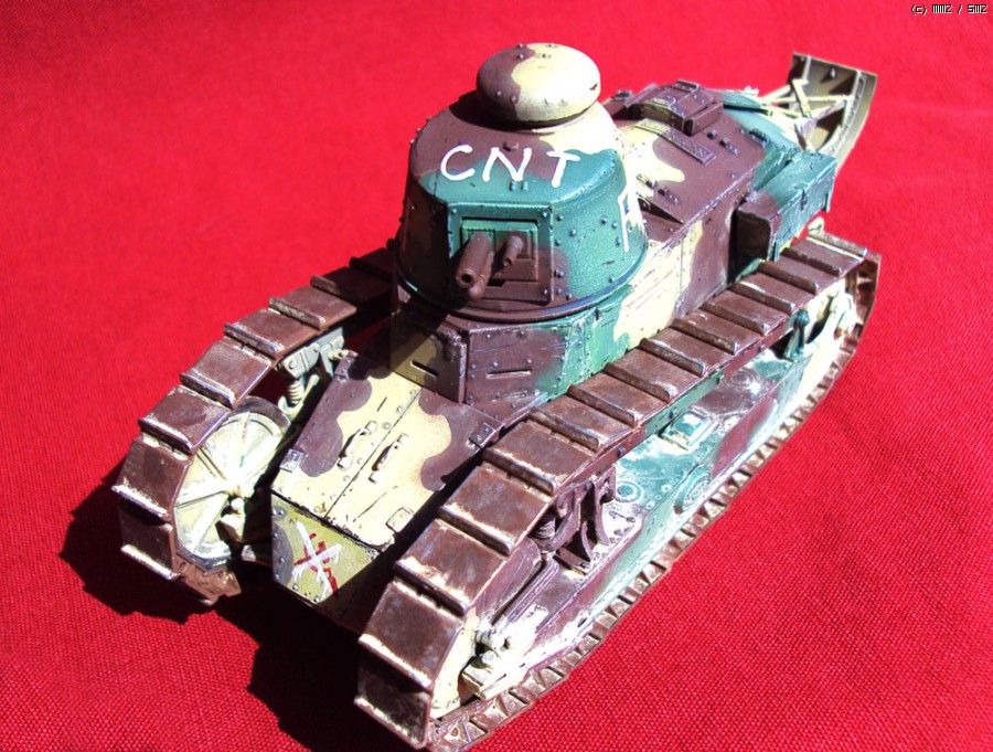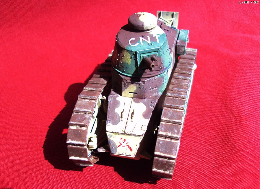 화려한 데칼의 프랑스군 사양으로 만들까도 했지만 언젠가 본 스페인 내전 관련 영화가 너무 인상적이어서 영화에 등장은 안했지만 (실제로도 투입되었을 확율은 적지만) 무정부주의 군대(C.N.T.F.A.I.)의 입장에서 싸웠던 인물들의 모습과 최후가 인상적이어서 제작해 봤습니다.
