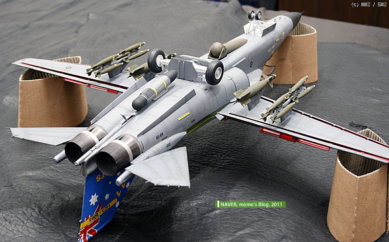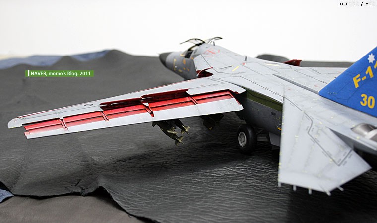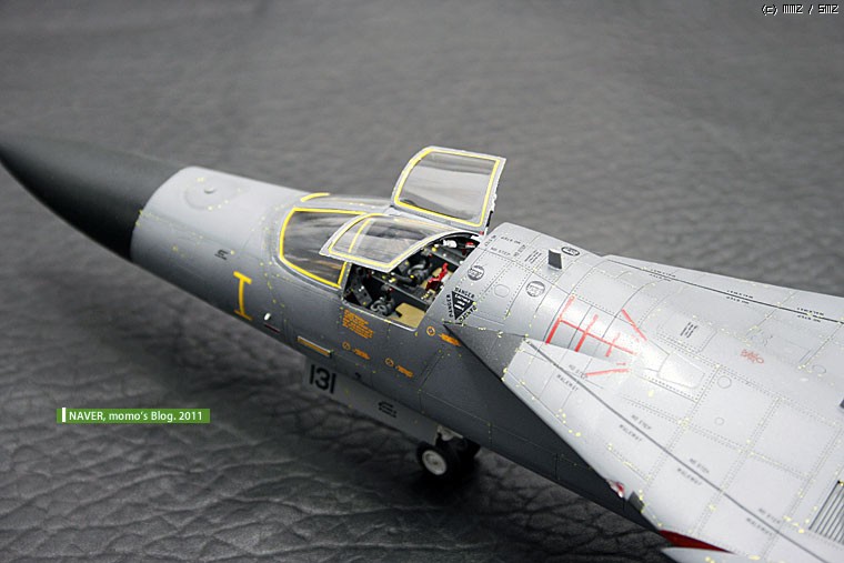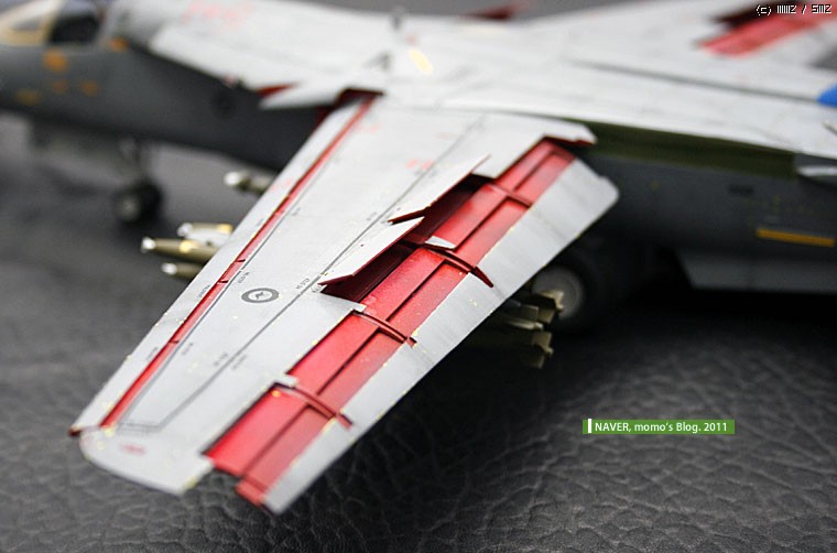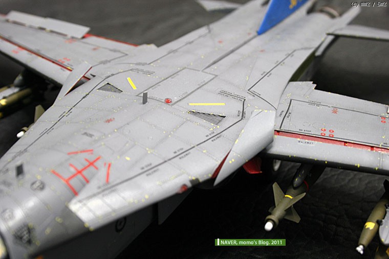 데칼 반응 속도가 너무 빨랐습니다. 수직미익이나, 등쪽의 정비용 스텝 유도 라인도 잘못되었습니다. 결국 칼로 구간별로 잘라서 붙이면서 했습니다. 너무 빨리 데칼이 반응해서 고생했습니다.