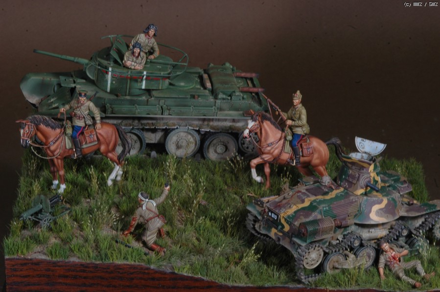 그라운드 워크가 너무 단조로운것 같은데.... 실제로 북만주에 가본적은 없지만, 사진이나 기록화로 확인되는 현지의 모습은 실제로 이처럼 한결같이 사람 무릎높이의 잡초만 끝없이 펼쳐진 단조로운 풍경이더군요.