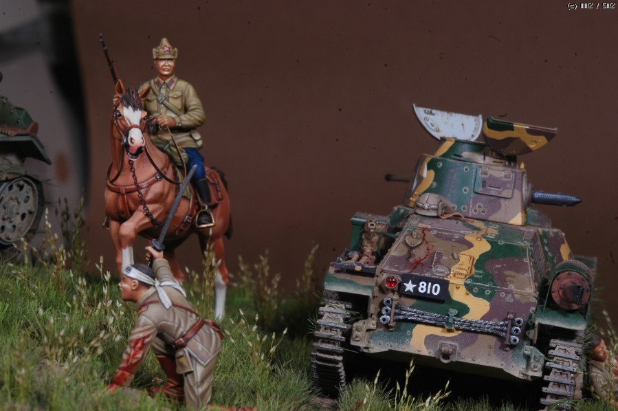 일본군의 복장자료는 그리 흔하지 않아서.... 만들어 놓고보니 저 방식의 중위 계급장은 1936년 이전에 사용된것이더군요. 노몬한 전투가 벌어진 1939년에는 계급장이 옷깃으로 옮겨진걸 확인했는데.... 그런 사소한 문제로 다 만든걸 다시 뜯어내 고치긴 싫군요.