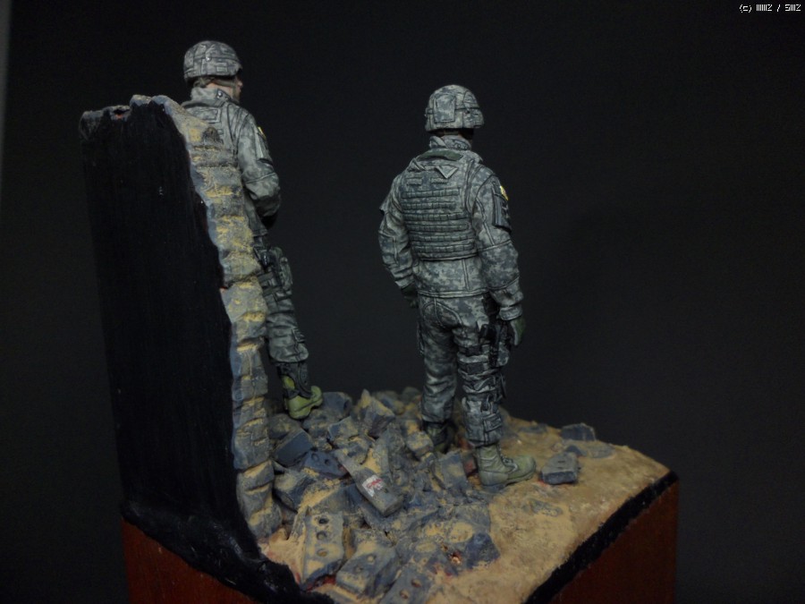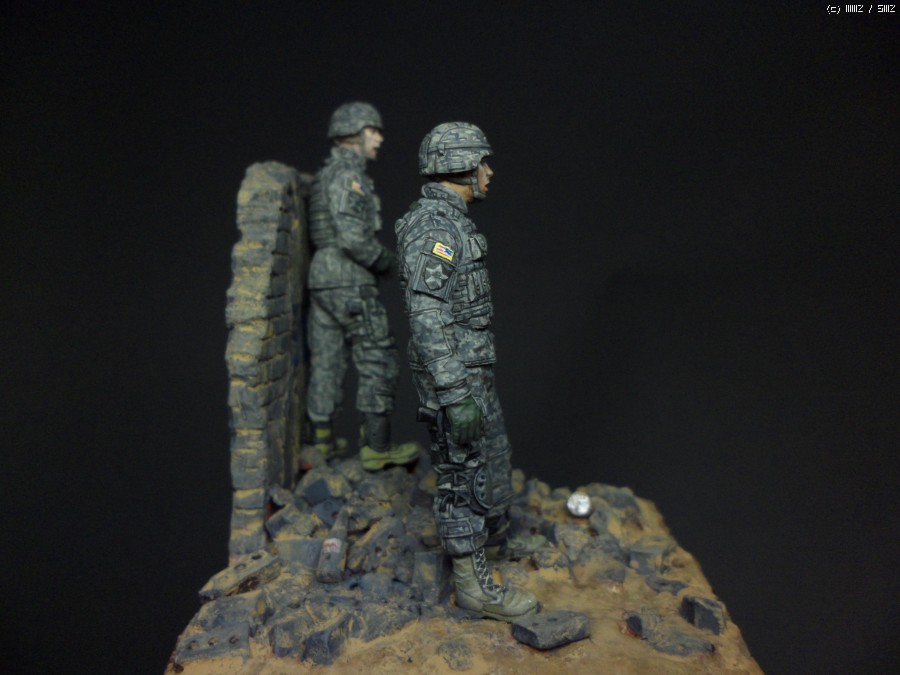 벽돌과 벽돌담은 모두 석고판을 재단하여 만들었고 요새벽돌 느낌을 주기 위해 타공을 만들어주었습니다. 처음에는 험비와 같이 올릴 계획이었으나 차량을 안만들다가 만들려니 손이 너무 느려서 작은 비넷으로 완성시켰습니다^^;;