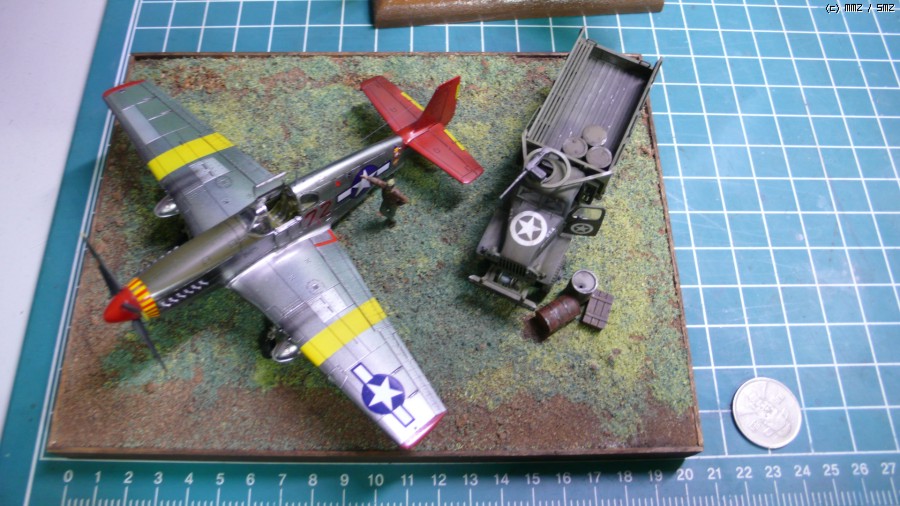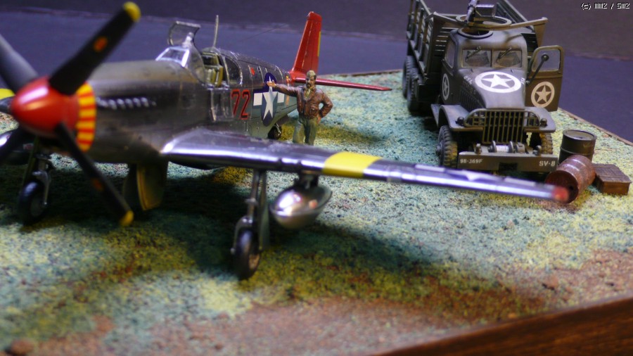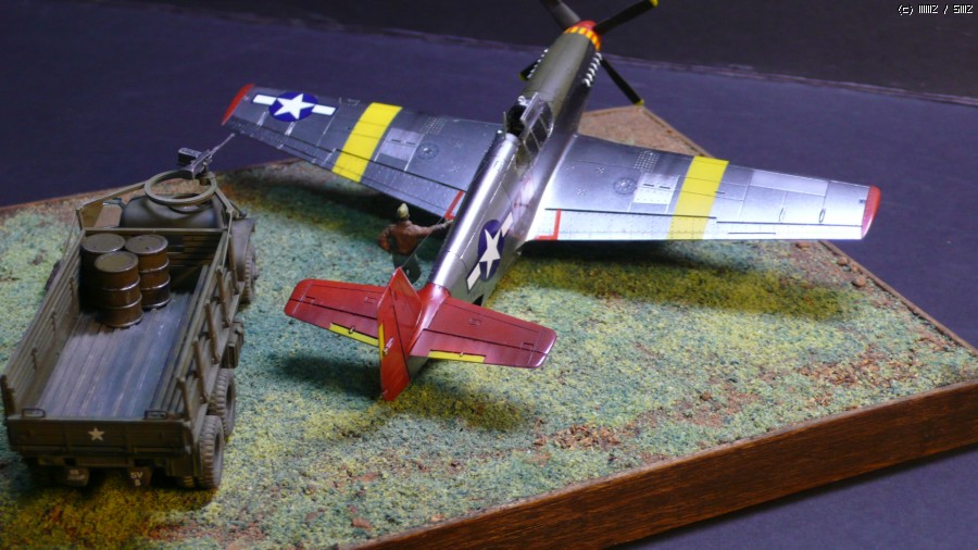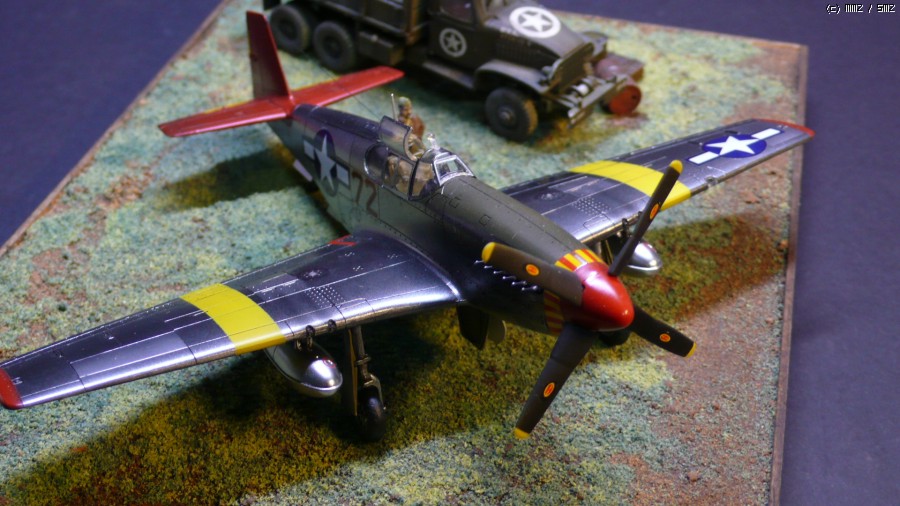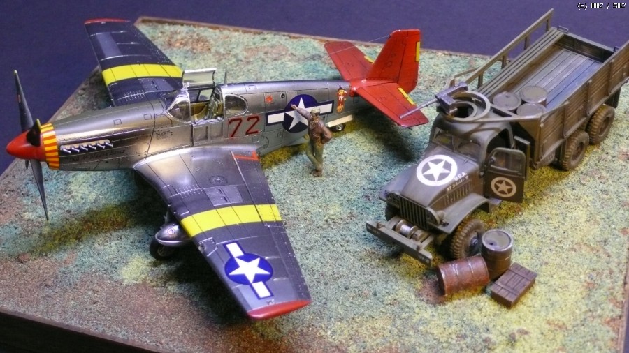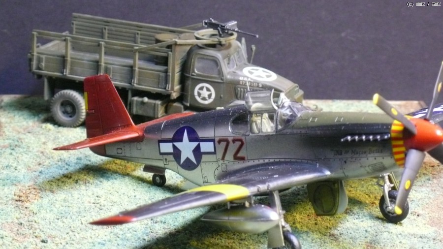 아카데미 1/72 P-51C 무스탕과 2.5톤 카고트럭입니다.