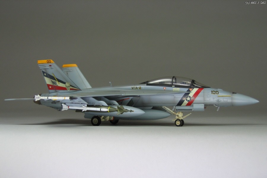 하세가와 1/72 F/A-18F 수퍼호넷으로 마킹은 VFA-2 '바운티 헌터스'로 제작했습다 종석 부분에 신경을 많이 썼고 웨더링은 은은하게 필요한 부분만 강조했습니다. 무장은 키트의 것LGB만 다른 곳에서 가져왔습니다.