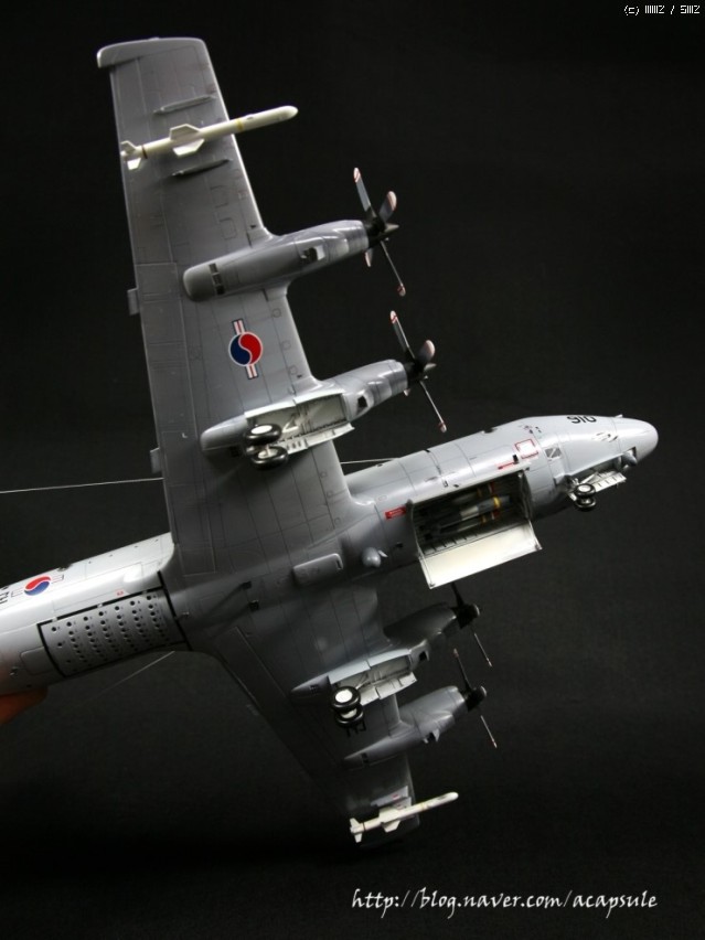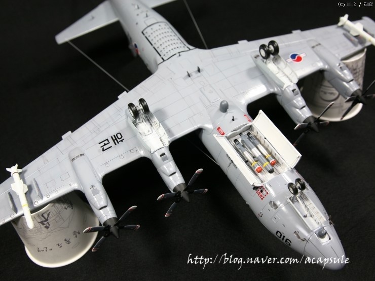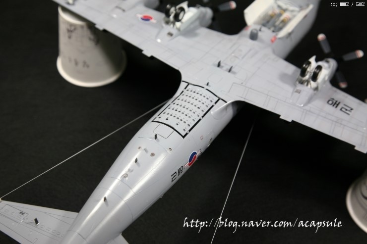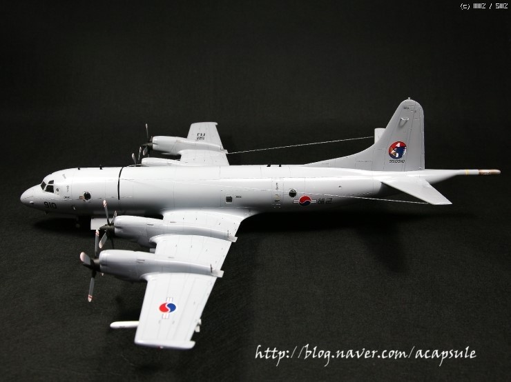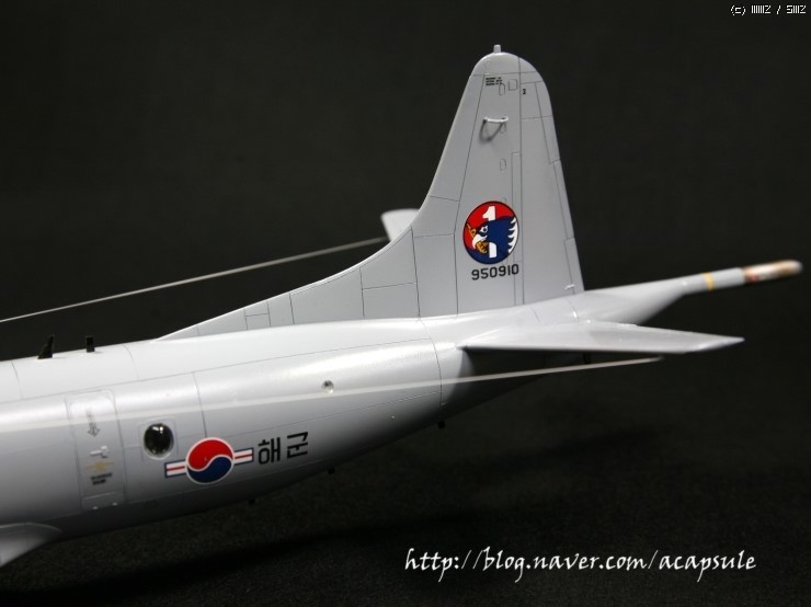 작업시간이 그리 많지 않아 조금씩 제작하던 한국해군 P-3CK (최근 도입된 개수버전)를 완성했습니다..기존 P-3C 기체와는 다른 부분들이 추가되어 몇가지 자작한 부분이 있습니다..그리고 사용기체가 아닌 최신 버전이라 웨더링은 최소화하였구요..+몰드라 -몰드로 전체를 다 밀어내고 다시 엔그레이빙해서 제작했는데 -몰드로 하지 않고 그냥 +몰드로 제작해도 큰 무리가 없어보입니다..-몰드로 다시 파다보니 도랑처럼 되어 버리는 경향이 있습니다..그리고 항상 제 작업에서 빠지지 않는 자작부분인데요..우선 144 P-3C에는 무장창이 재현되어 있지만 72 하세가와제는 무장창이 제현되어 있지 않습니다.그래서 패널라인 따라 파내고 자작해서 넣어주었습니다. 그리고 CK버전부터 사용되는 한국형 중어뢰인 청상어를 자작해서 넣었구요. 전방과 중앙동체에 시커부분자작, 음..그리고 노즈에 붙는 센서류 등등 실기체를 비교하면서 수정작업을 진행했습니다. 그리고 지난번 발매한 이지칼 72 P-3C 데칼을 사용했습니다. 작은 워크웨이나 노스텝등의 자잘한 데칼의 부착이 쉽구요..전반적인 발색은 저희 데칼이지만 좋은 느낌입니다..ㅎㅎ 그럼 사진 나갑니다..항상 느끼는 것이지만 작업하고 나면 항상 아쉬움이 남는군요..