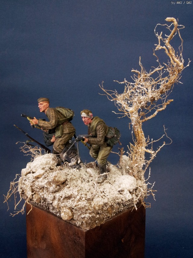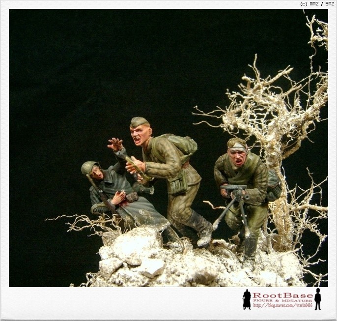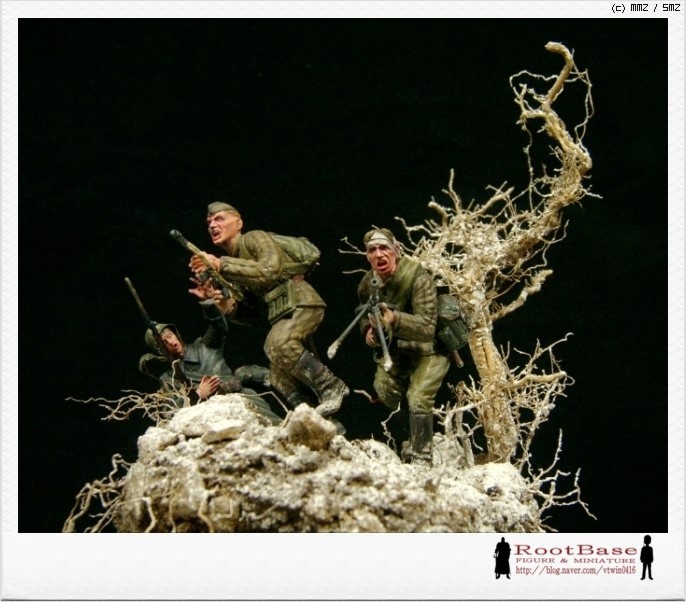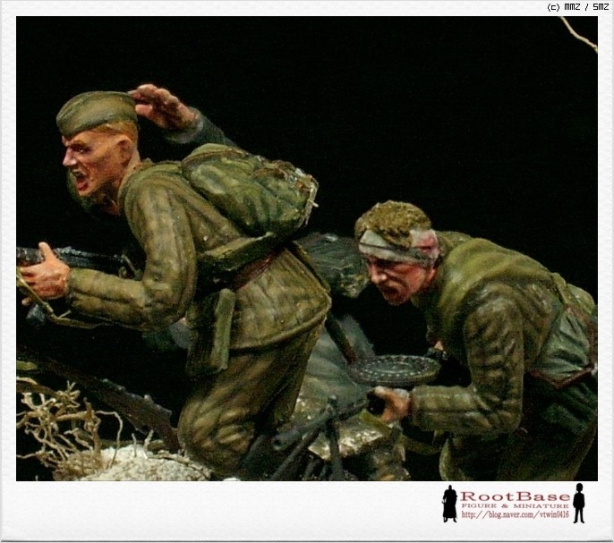 동적인 자세를 위해서 개조가 불가피했습니다 큰 개조는 어림도 없고 타미야 소련군 떼거지중에 마음에 드는 몇명에
