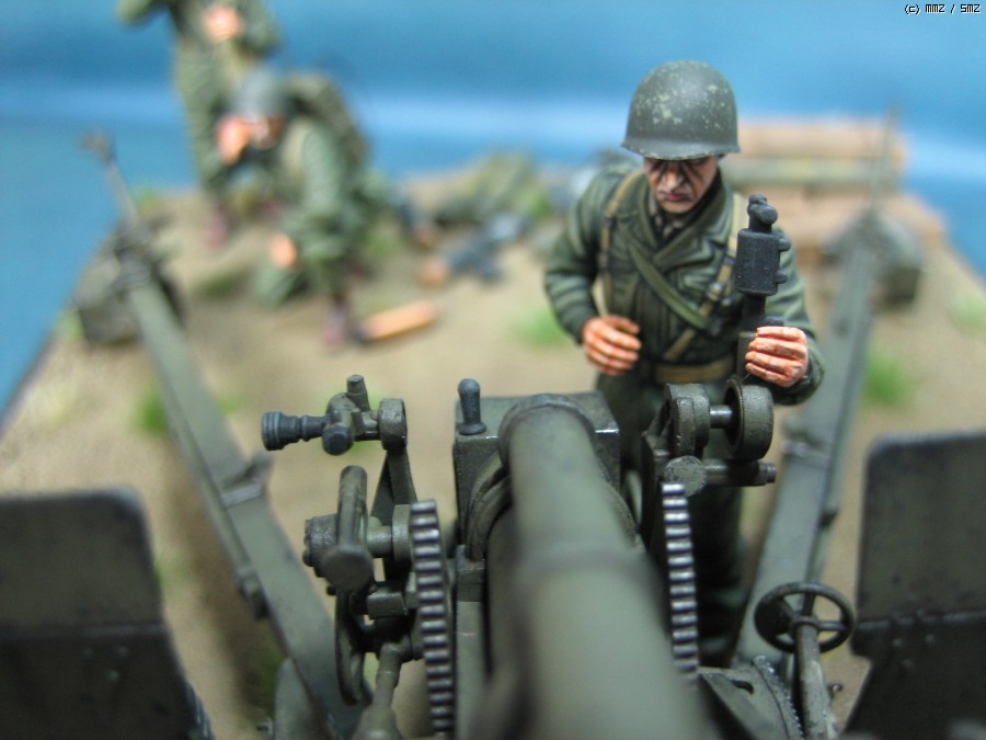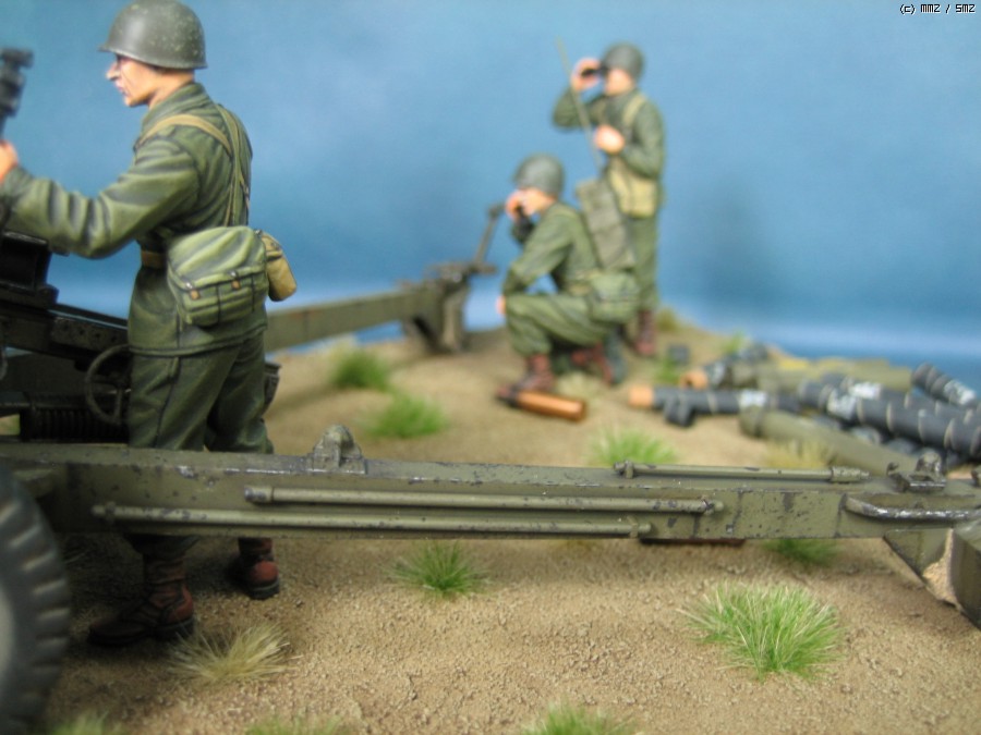 안녕하세요..이번엔 105밀리 포를 만들어 보았습니다.이탈렐리 제품인데 요즘 나온 105밀리포를 본적이 없어서 잘모르겠지만 요즘시각으로 보아도 수정하기 힘든 몇부분에 밀핀자국이 있는걸 빼고는 아직까지 꽤 쓸만한 키트인것 같습니다.물론 요즘은 구하기가 힘들어졌습니다만 아직까진 꽤 괜찮은 키트임엔 분명한것 같습니다.인형은 드래곤제를 사용했는데 6마리가 한꺼번에 있는 이인형들은 참....굉장히 않좋습니다.몰드도 너무 두리뭉실하고요.이상하게도 드래곤 미군인형들은 철모가 아주 모양새가 않좋은데 타미야제로 철모만 교체시켜주고 나머진 키트 그대로 약간의 조합만 변경 시켜주었습니다.얼굴이 너무 두리뭉실해서 좀 오버스러운 윤곽을 그려주었습니다.탄박스는 AFV클럽제 별매품을 이용해주었습니다.날씨가 갑자기 추워졌네요.모두 건강 유의 하시기바랍니다.